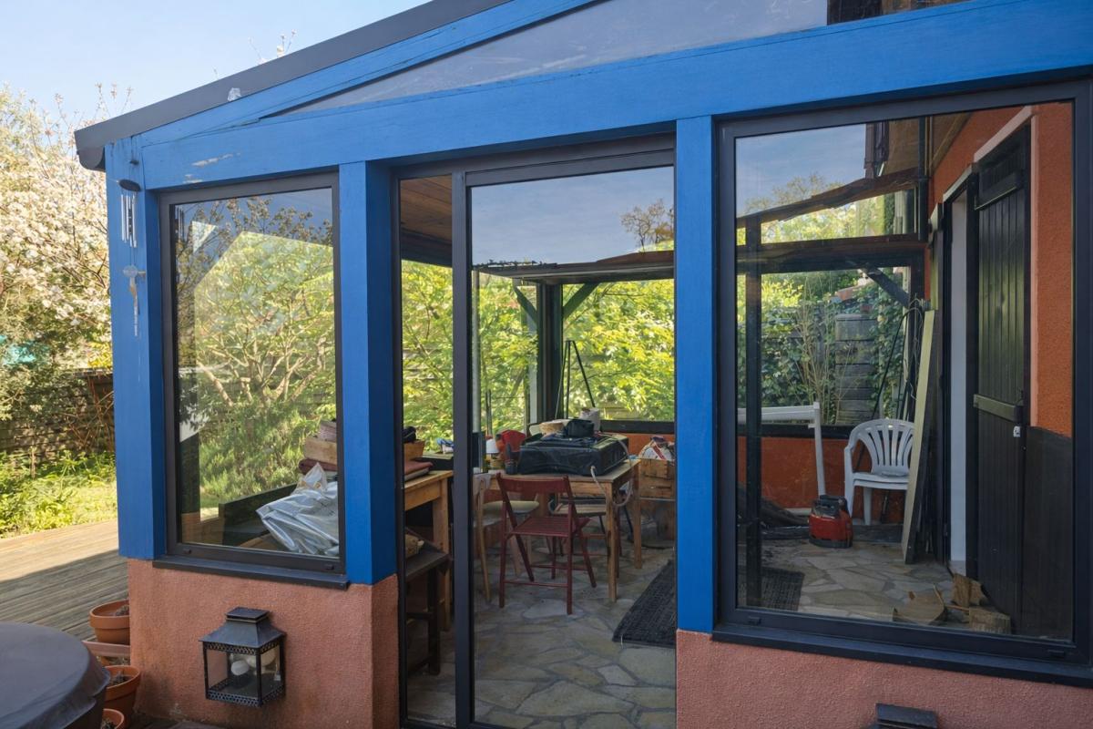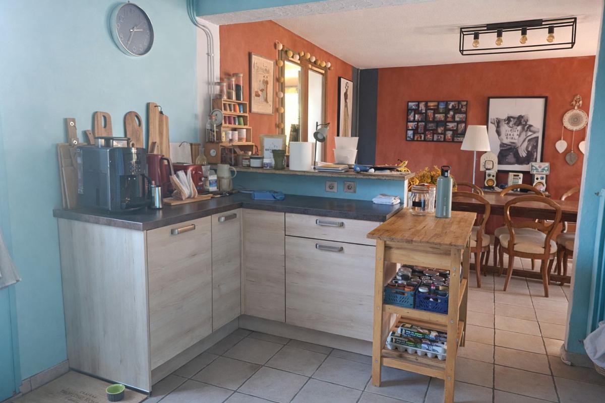 La cuisine et les espaces de vie s'ouvrent harmonieusement vers une véranda, véritable pièce supplémentaire baignée de lumière, offrant une transition idéale vers l'extérieur.