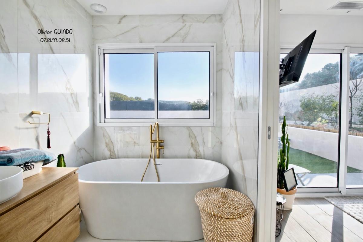A vendre Hérault - CLERMONT L'HERAULT 34800 - Villa contemporaine récente R+1 d'environ 160 m2, 6 pièces avec jardin, piscine et garage, 5 chambres dont 1 suite parentale en rez-de-chaussée, 3 salles de bains douches et baignoire, 3 wc, dressing, cellier, climatisation réversible par gainable incorporé en faux plafond, ballon thermodynamique, fibre optique, domotique commande à distance, alarme et vidéo surveillance.