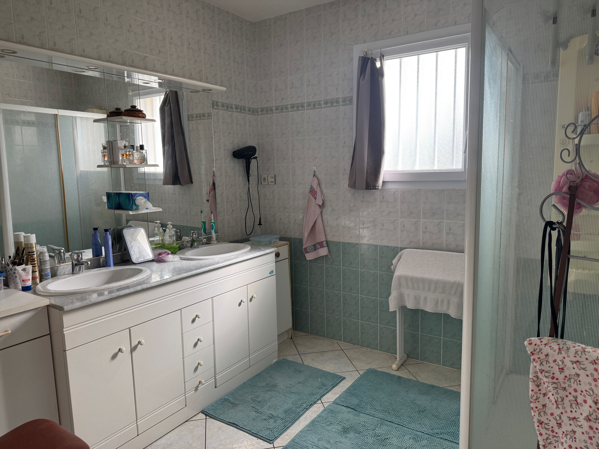 Entrée indépendante avec placard, cuisine ouverte sur le séjour avec passe plat aménagée et équipée, séjour lumineux d'environ 38 donnant accès à la vérabnda d'environ 23m2 isolée avec volet motorisé et pompe à chaleur ( véritable espace à vivre tès agréable donnant sur le jardin) m2, dégagement 3 chambres dont 2 avec placard, salle d'eau, arrière-cuisine / buabnderie, garage avec faux grenier et cave en sous-sol.