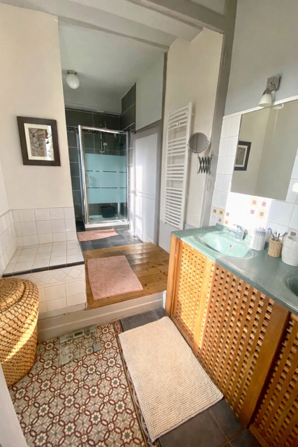 Entrée sur une belle cuisine de 24m2, séjour/salon de 37m2, wc indépendant, salle de douche, buanderie et 2 chambres pour la partie RDC
