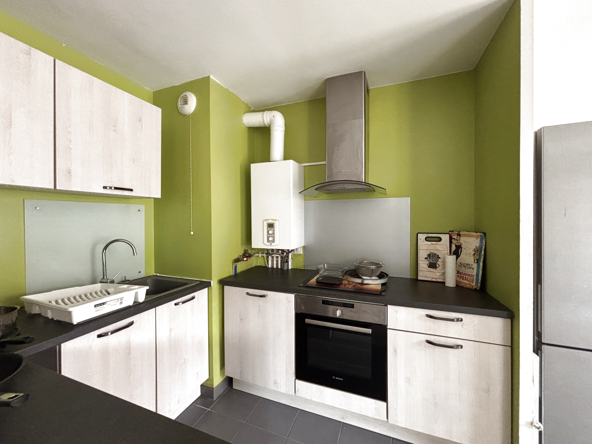 Il se compose d'une entrée avec placards, d'une cuisine aménagée et équipée ouverte sur un séjour lumineux, de deux chambres, d'une salle de bains ainsi que de WC séparés.