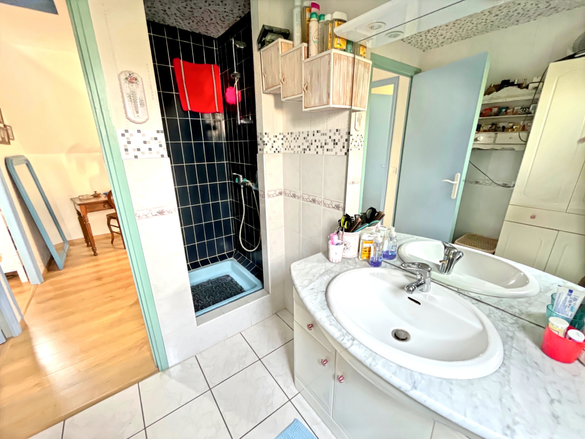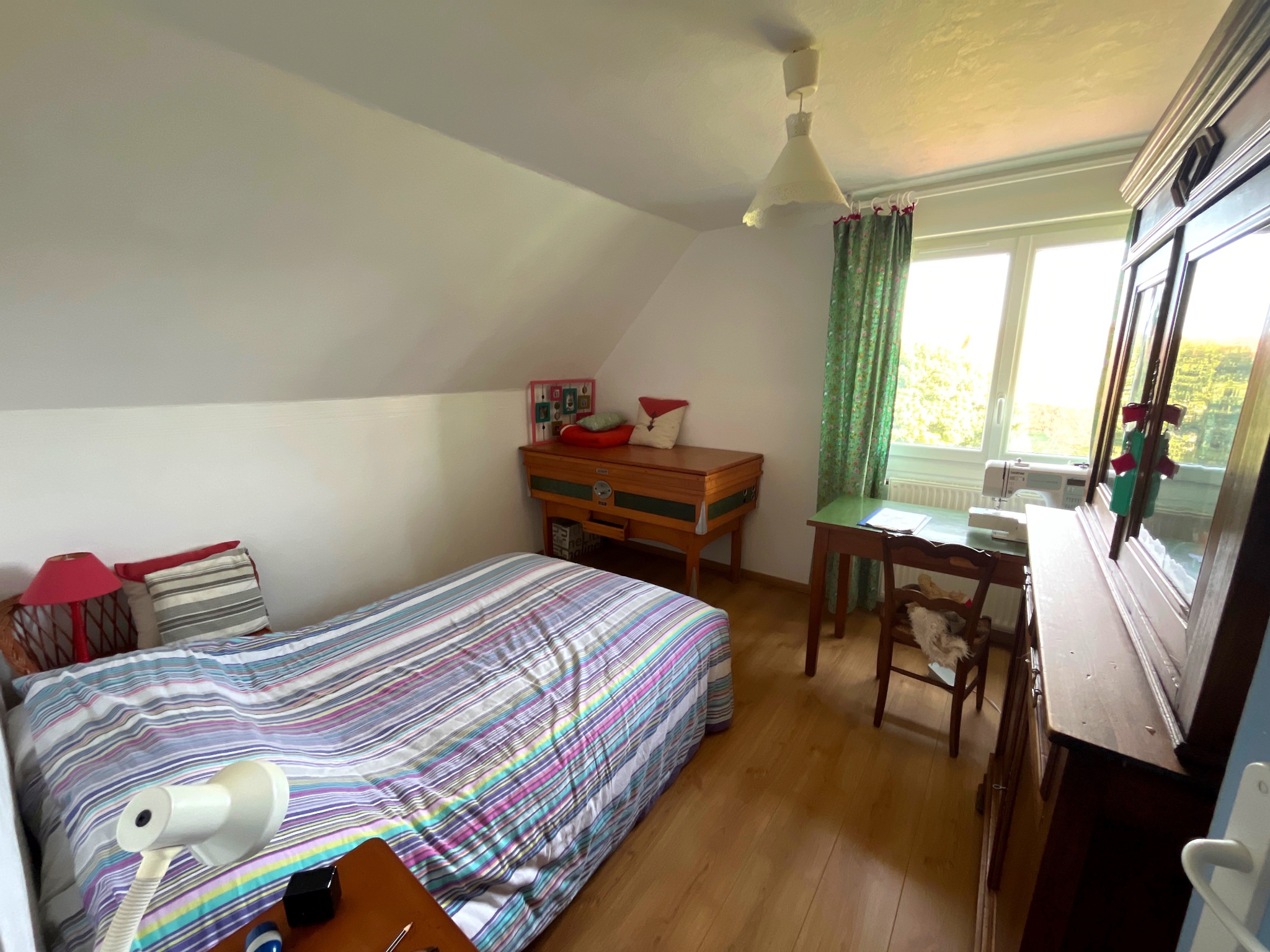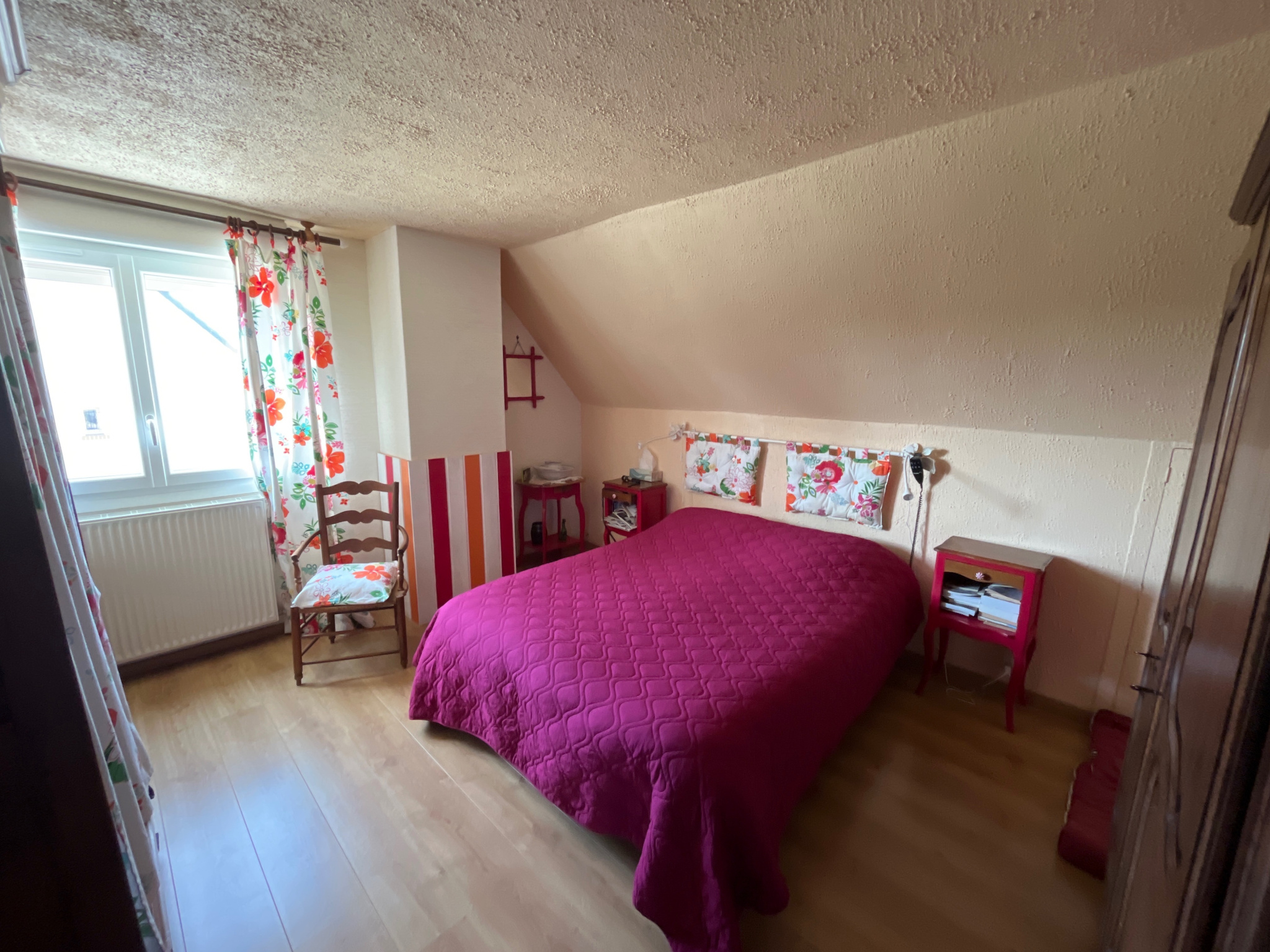 À l'étage, le palier dessert deux belles chambres, un bureau idéal pour le télétravail ou une chambre d'appoint, une salle d'eau ainsi qu'un dressing.