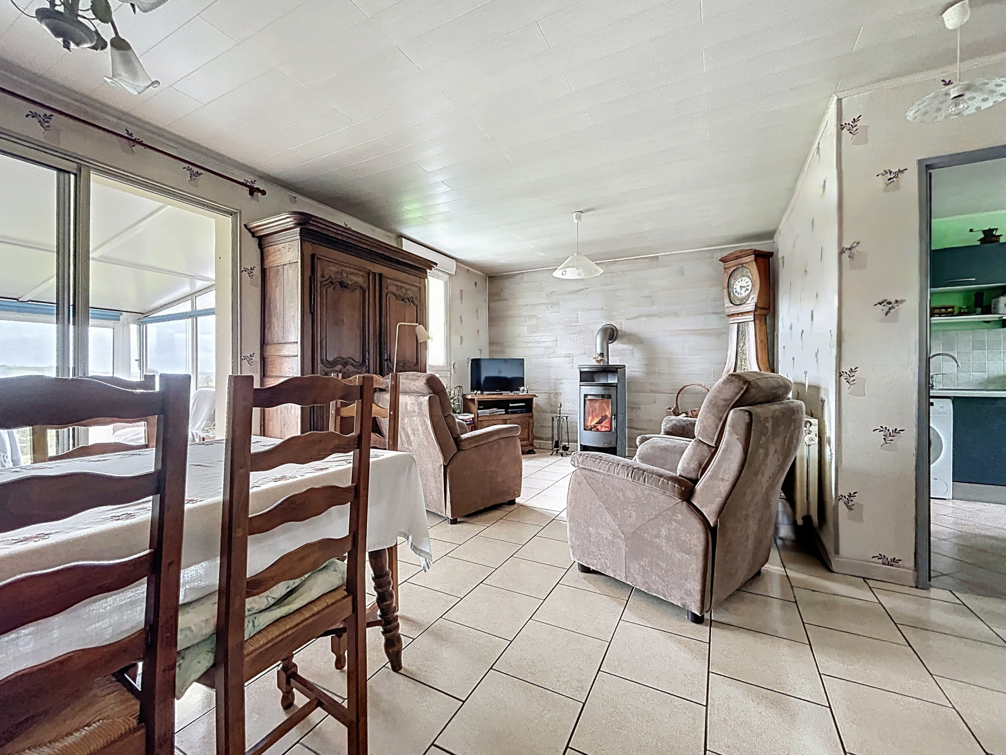 Classée DPE D, la maison est équipée d'une chaudière gaz ainsi que d'un poêle à bois. Assainissement raccordé au tout-à-l'égout.