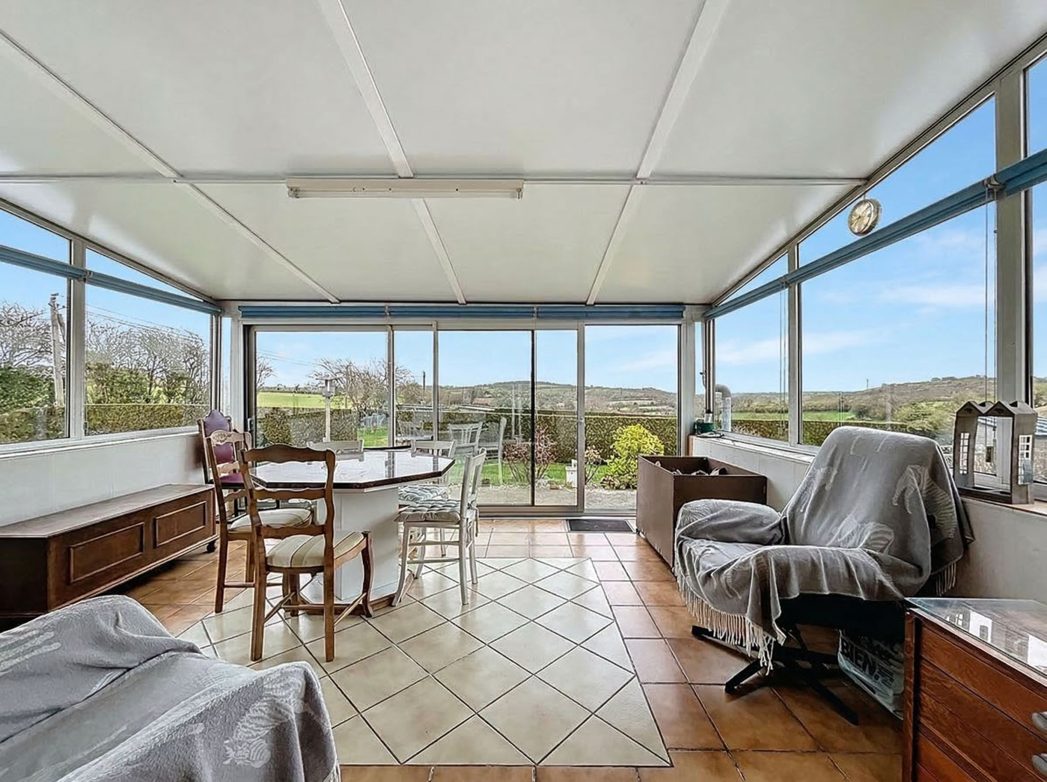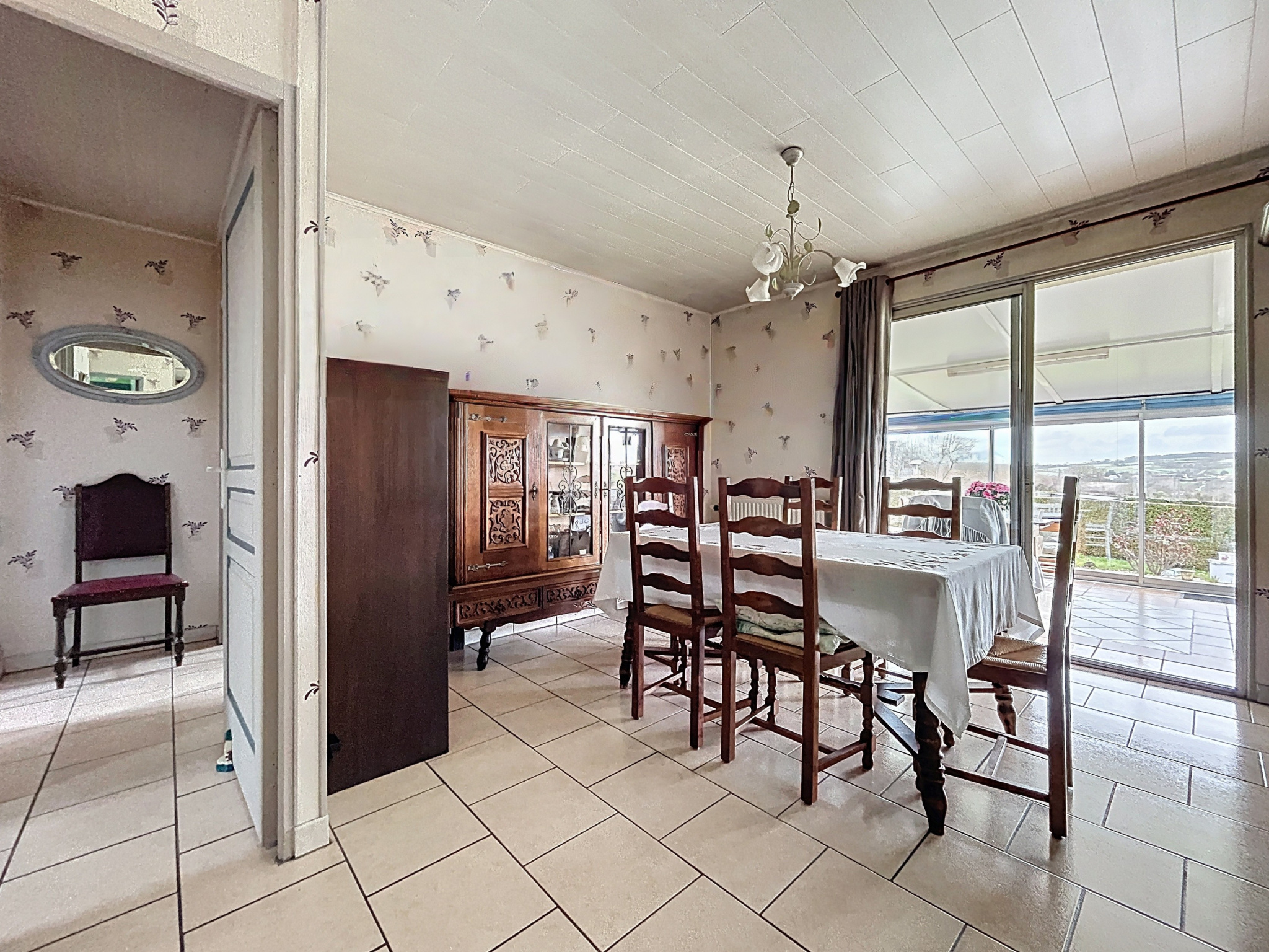 Implantée sur un terrain de 1 800 m2, la propriété bénéficie d'une vue dégagée sur la campagne environnante, garantissant tranquillité et sérénité. À l'extérieur, un garage et des dépendances de plus de 80 m2 viennent parfaire l'ensemble.