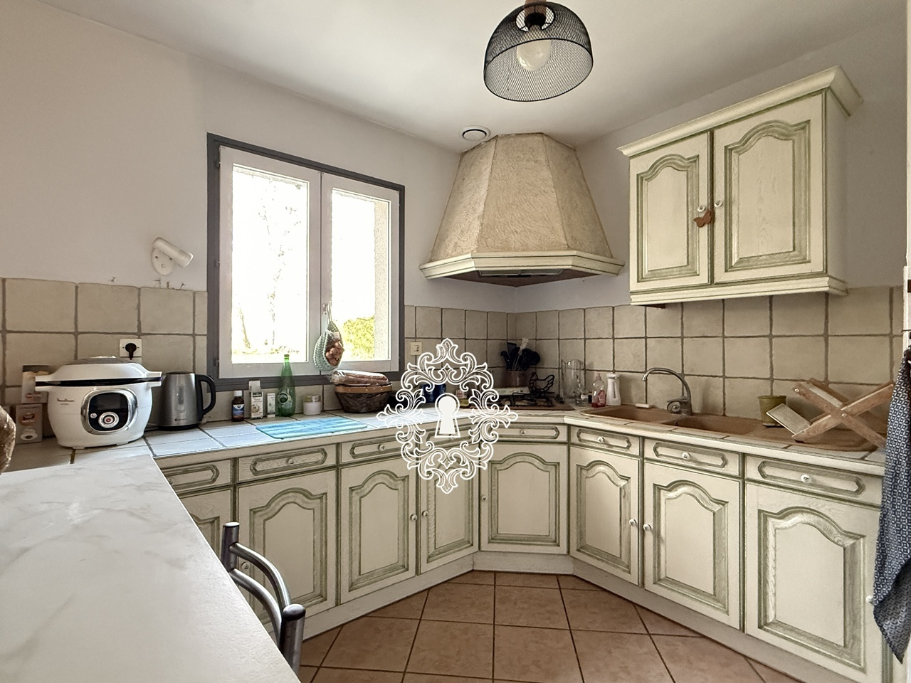 séjour 44 m2 (poêle à pellets) avec cuisine ouverte et aménagée, couloir, 3 chambres, salle d'eau, wc,