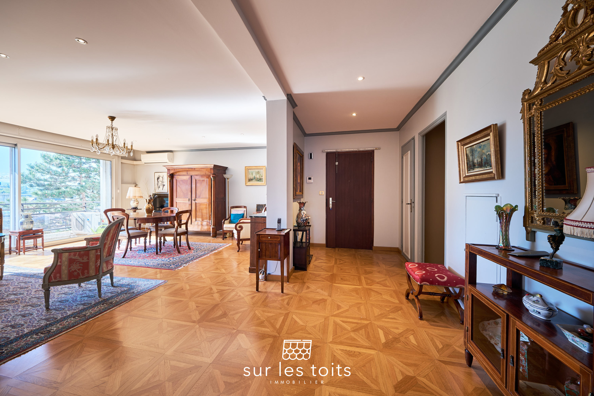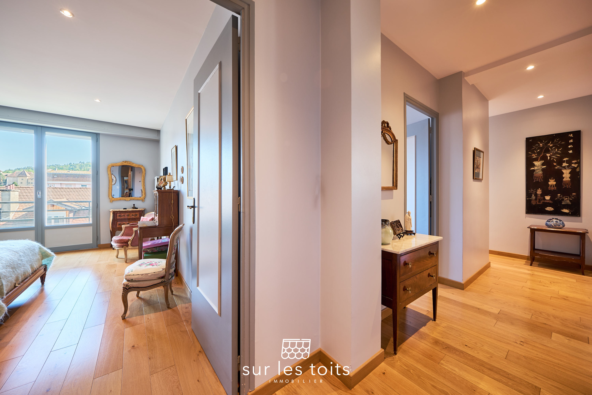 L'agence sur les toits vous présente « Calvin », appartement bourgeois de 130 m2 et 4 chambres en hyper centre, proche de la gare et du lac d'Annecy.