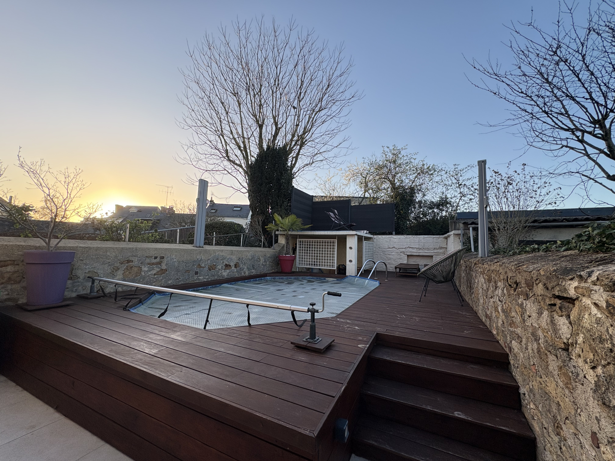 Venez découvrir cette jolie maison de ville d'environ 146 m2 comprenant une pièce de vie traversante avec salon et séjour d'environ 50m2, une cuisine aménagée et équipée donnant accès directement à la terrasse et la piscine. A ce même niveau vous trouverez un espace buanderie ainsi qu'un wc. Au premier étage, un palier dessert 2 chambres avec chacune une salle d'eau et des espaces de rangements, wc indépendant. Au dernier étage, 1 chambre supplémentaire ainsi qu'une suite parentale avec de grands dressings et une salle d'eau avec douche à l'italienne, double vasque et wc. Une cave ainsi qu'un solarium complète ce bien. La maison se situe à seulement 5 minutes à pied de la Gare et des transports en commun (bus et tramway) les écoles, les commerces et le parc du Gué de Maulny sont également à proximité directe.