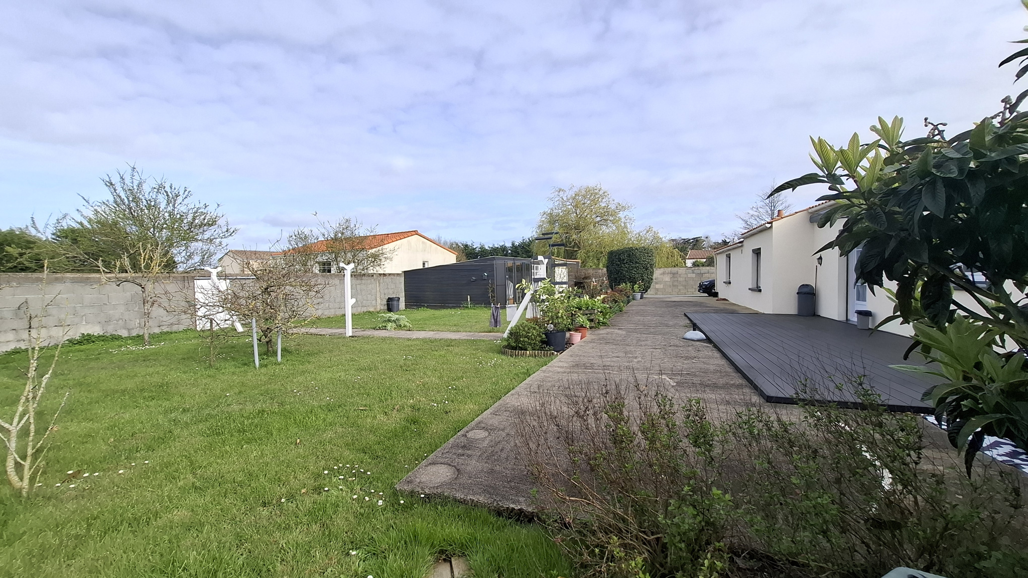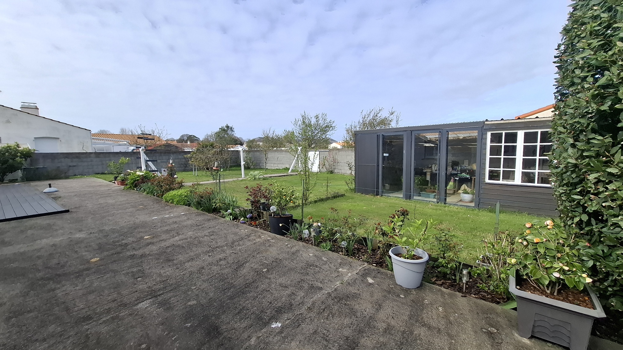 Dans le jardin, on trouve un grand atelier extérieur, un abri jardin / serre, un abri bois, une belle terrasse avec un store banne récent électrique et une mare ... le tout sur une parcelle de près de 1400m2