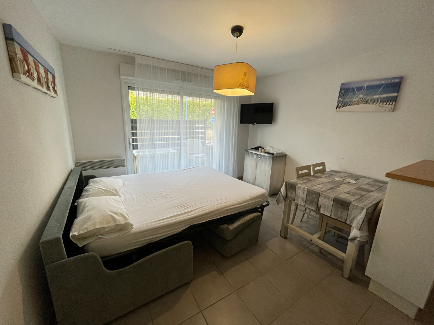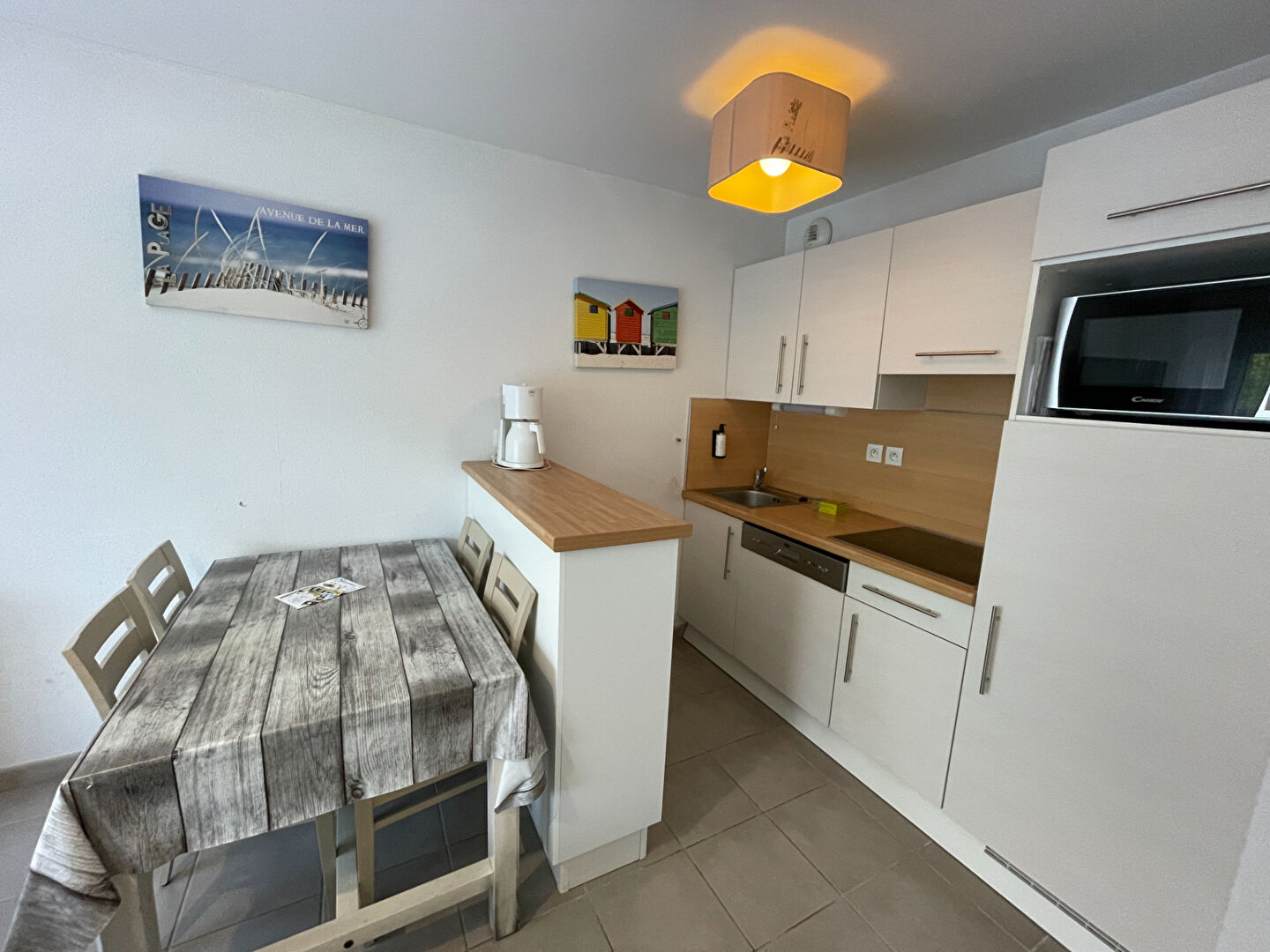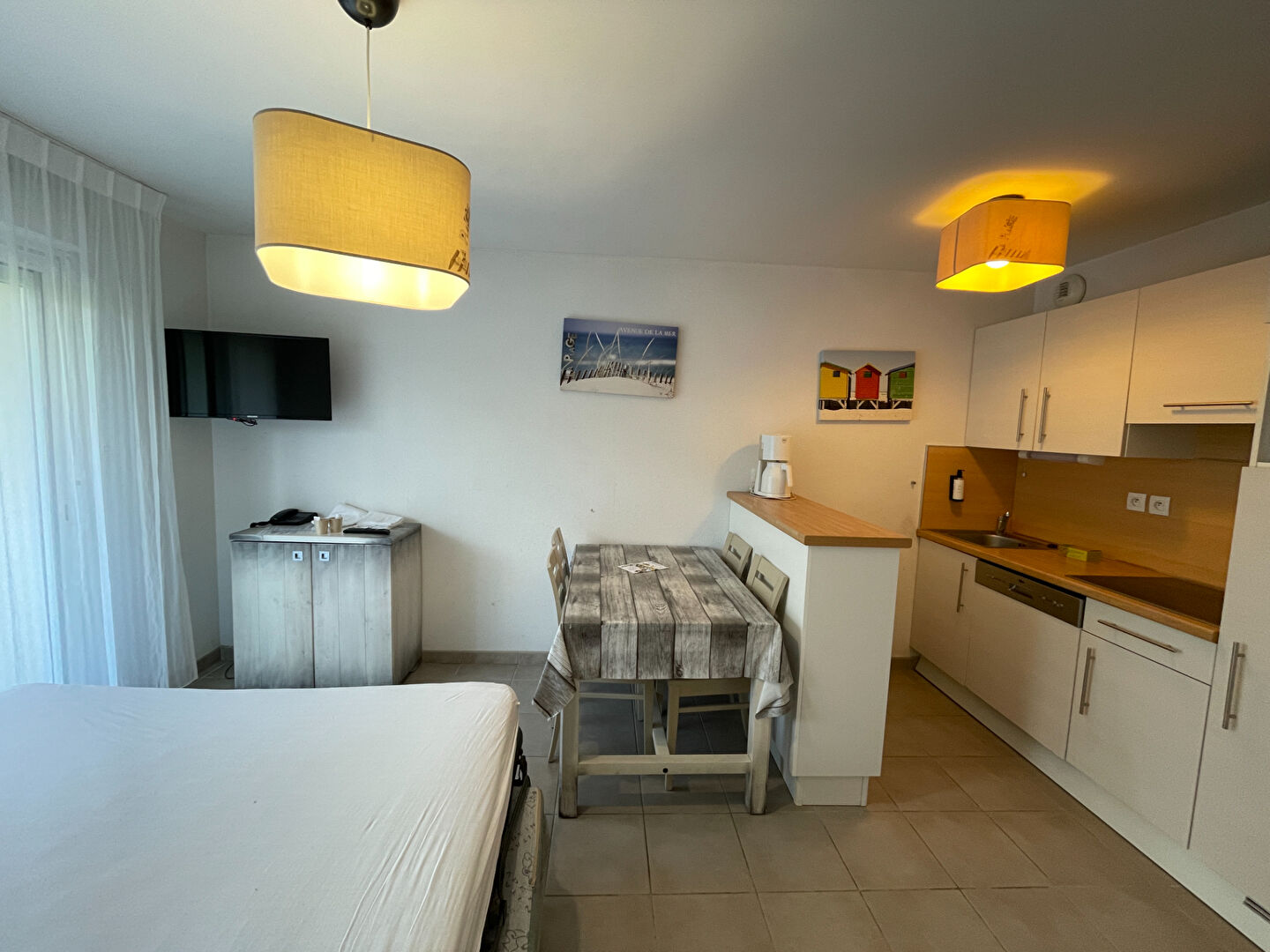 Situé en rez-de-jardin d'une résidence récente (2011) AVEC PISCINE, à 150 m de la plage et des animations, cet appartement vous offre tout le nécessaire pour des vacances réussies. Il se compose d'une entrée, d'un séjour avec cuisine aménagée et équipée, d'une terrasse exposée sud, d'une chambre séparée, d'une salle de bain, d'un wc séparé ainsi qu'une place de parking privative. Cet appartement est vendu meublé avec un bail commercial en cours vous permettant d'en profiter 7 semaines par an et de percevoir un loyer annuel garanti sans contraintes.