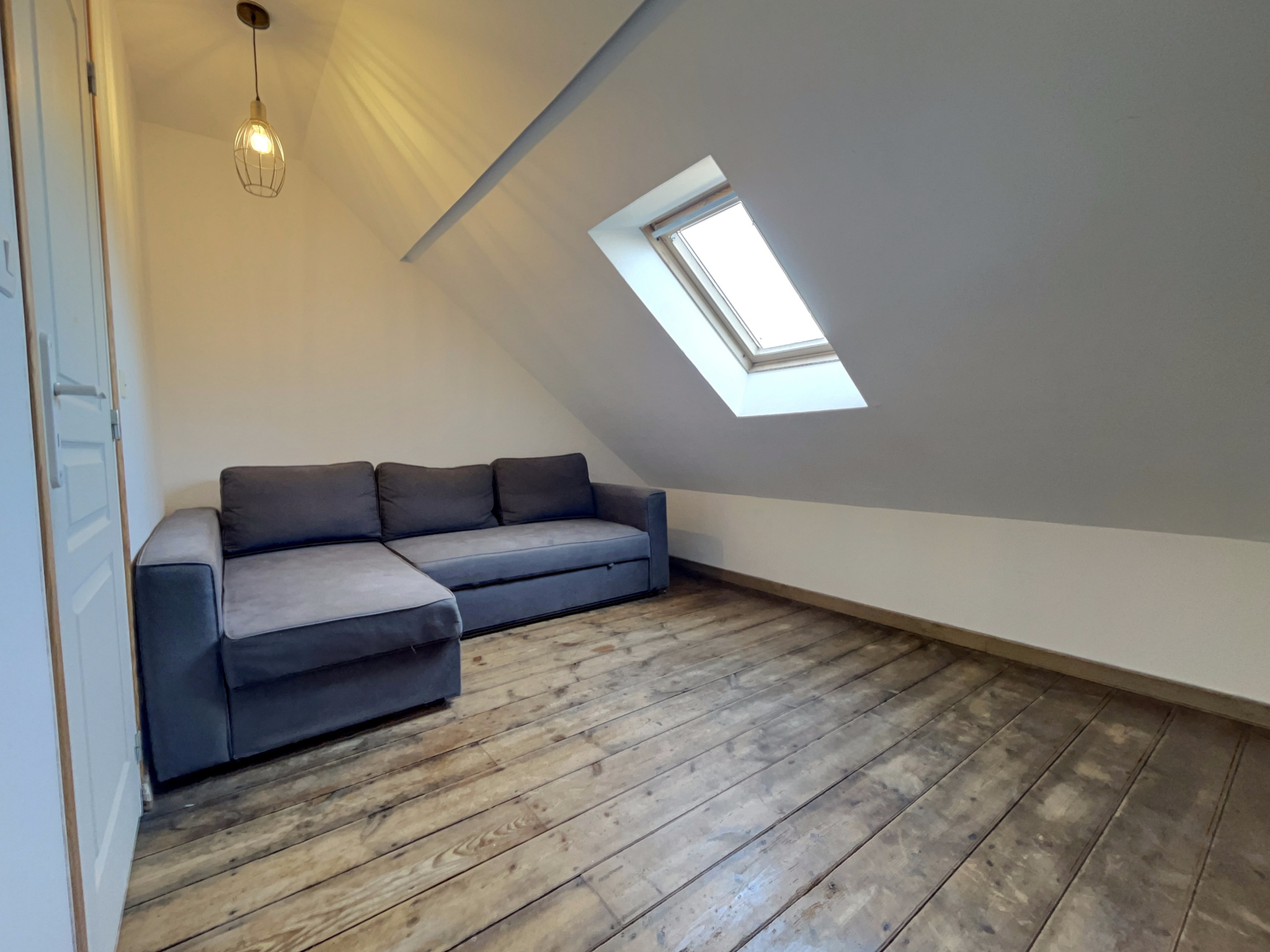 Au second étage, un espace palier intimiste mène à une charmante chambre, idéale pour recevoir ou créer un cocon supplémentaire.