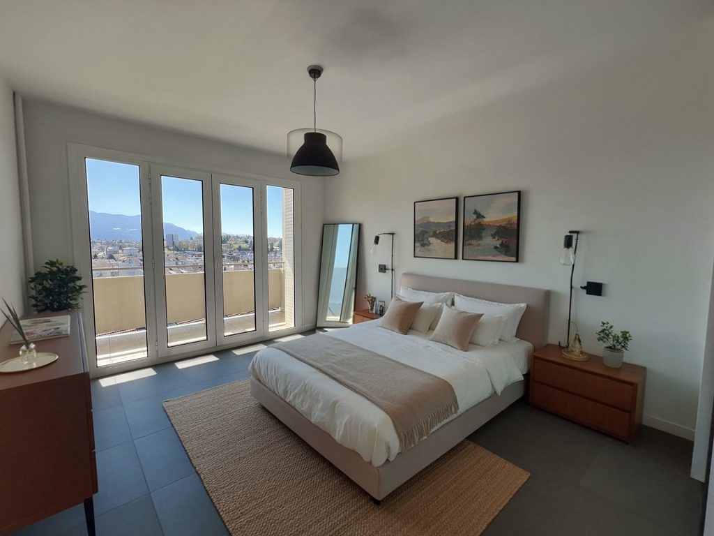 EXCLUSIVITE Voiron, à 2 pas du Centre, proche de toutes les commodités (écoles, commerces & transports?), au 7ème étage sur 9, venez découvrir ce très joli T3 de 73 m² habitables entièrement rénové avec goût en 2025. Cet appartement dispose d'une entrée avec placard ouverte sur un beau séjour de 20 m² donnant accès à un grand balcon exposé plein Sud & offrant une vue dégagée sur les massifs. Une jolie cuisine entièrement équipée indépendante avec coin repas, ouverte sur une loggia avec espace buanderie. 2 grandes chambres avec placard. Une belle salle d'eau avec douche à l'italienne & un toilette indépendant. Nombreux rangements. Chauffage Collectif Gaz. Menuiseries Aluminium double vitrage. LE PLUS : 1 cave en sous-sol & un parking privatif à la copropriété. Vous serez séduit par les volumes de cet appartement parfaitement agencé et très lumineux offrant une vue à couper le souffle !!