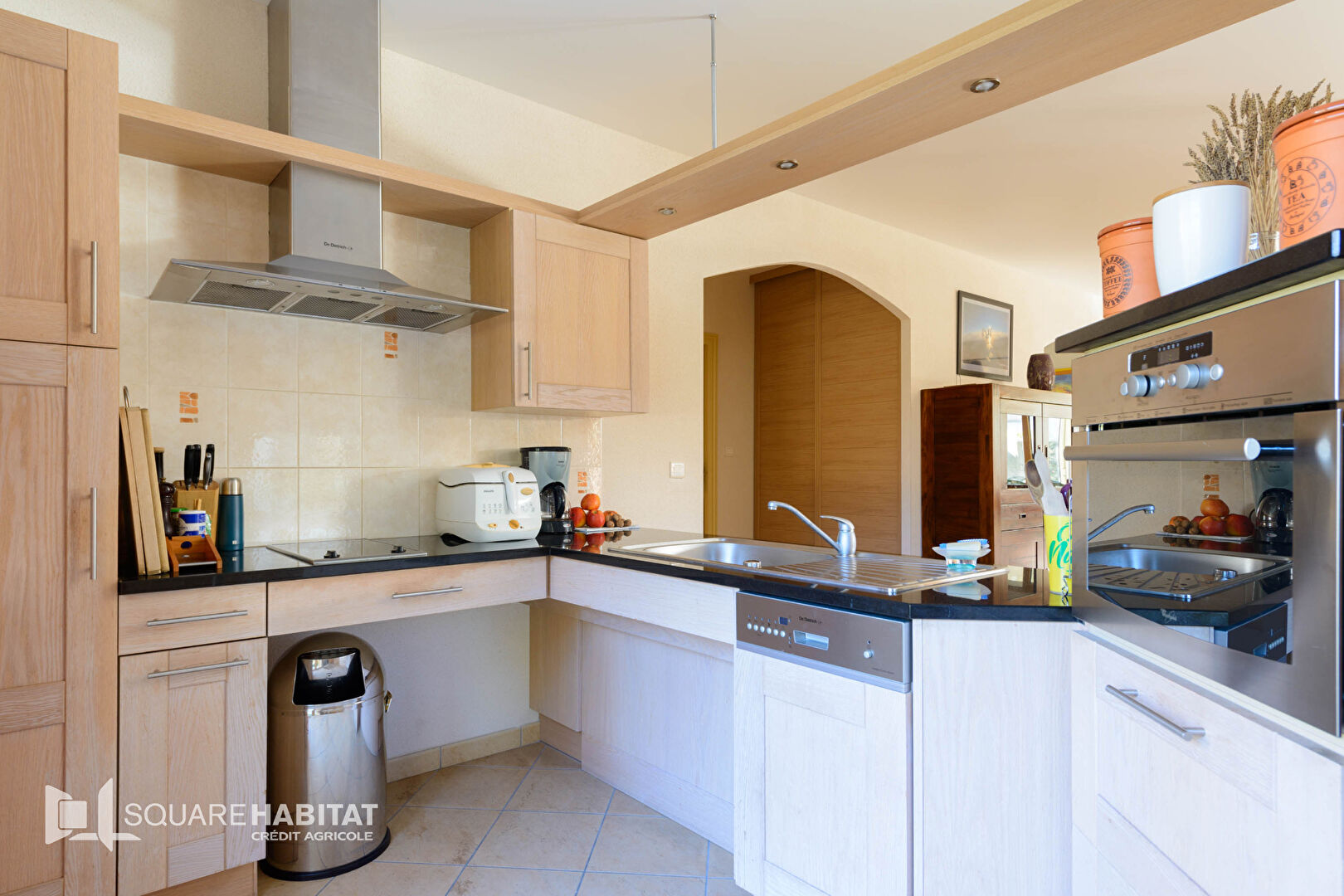 Très belle maison de plain pied de 2006, pour 136m² habitables, comprenant pièce de vie avec cuisine ouverte de 69m², 2 grandes chambres (14.47 et 15.48m²), salle d'eau, wc, lingerie, véranda, garage attenant de 37m².