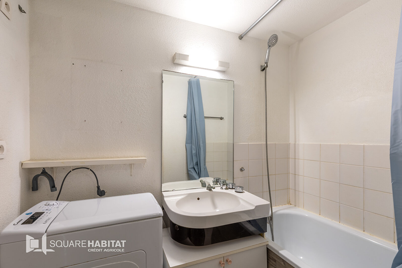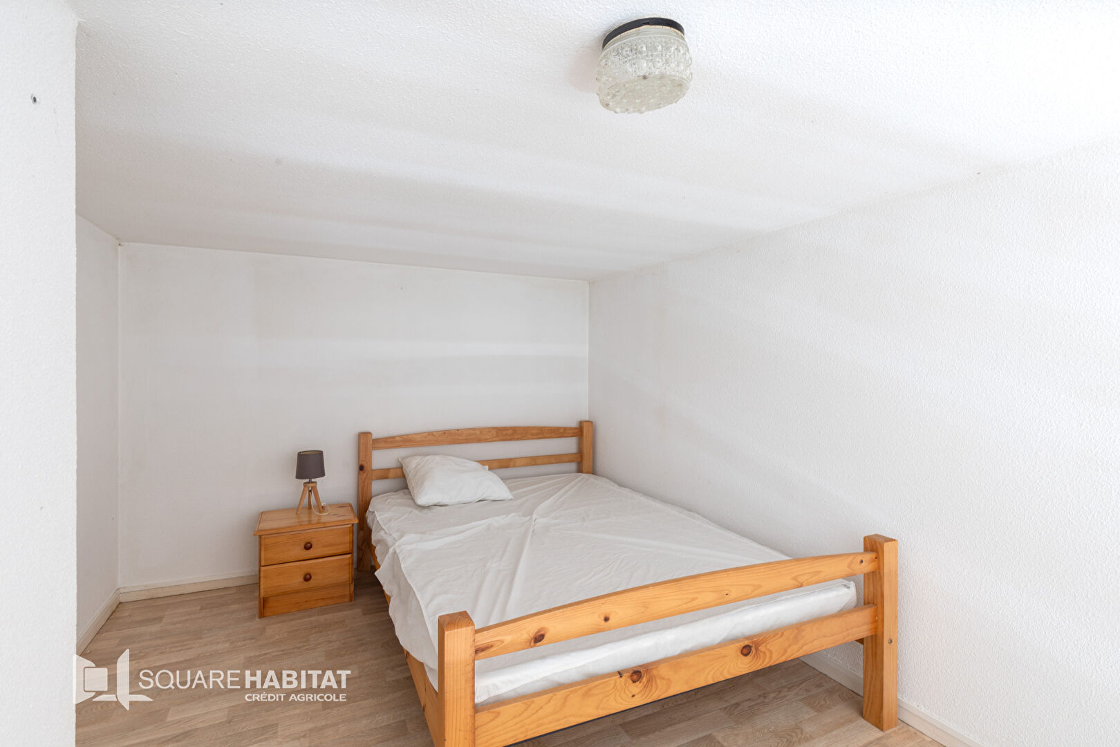 L'entrée dessert une salle d'eau, un placard, un séjour avec cuisine aménagée et équipée ainsi qu'une chambre en mezzanine.