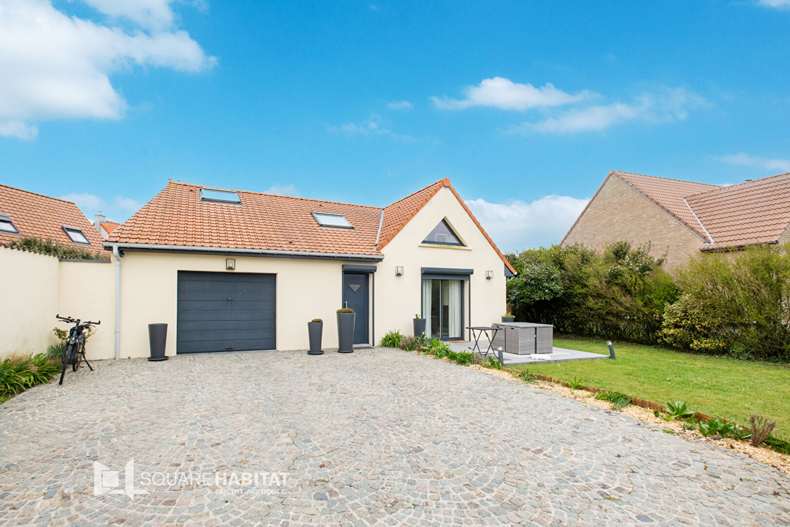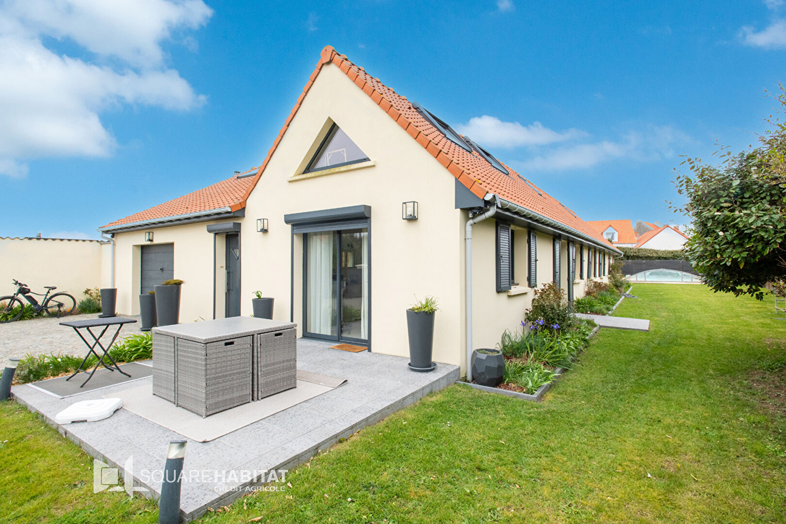A létage vous trouverez 2 chambres en enfilade , un espace enfantset un bureau cosy.Garage pratique et sécurisé