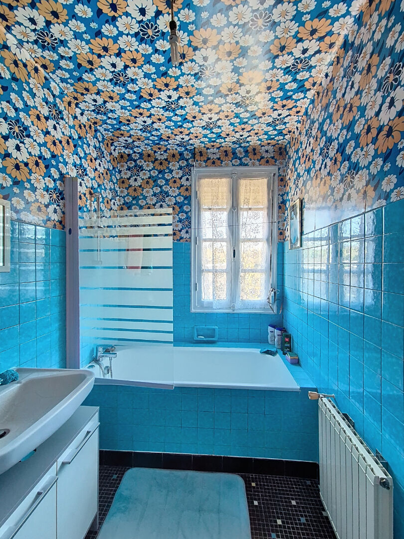 À l'étage, le palier mène à deux chambres ainsi qu'à une salle de bains.