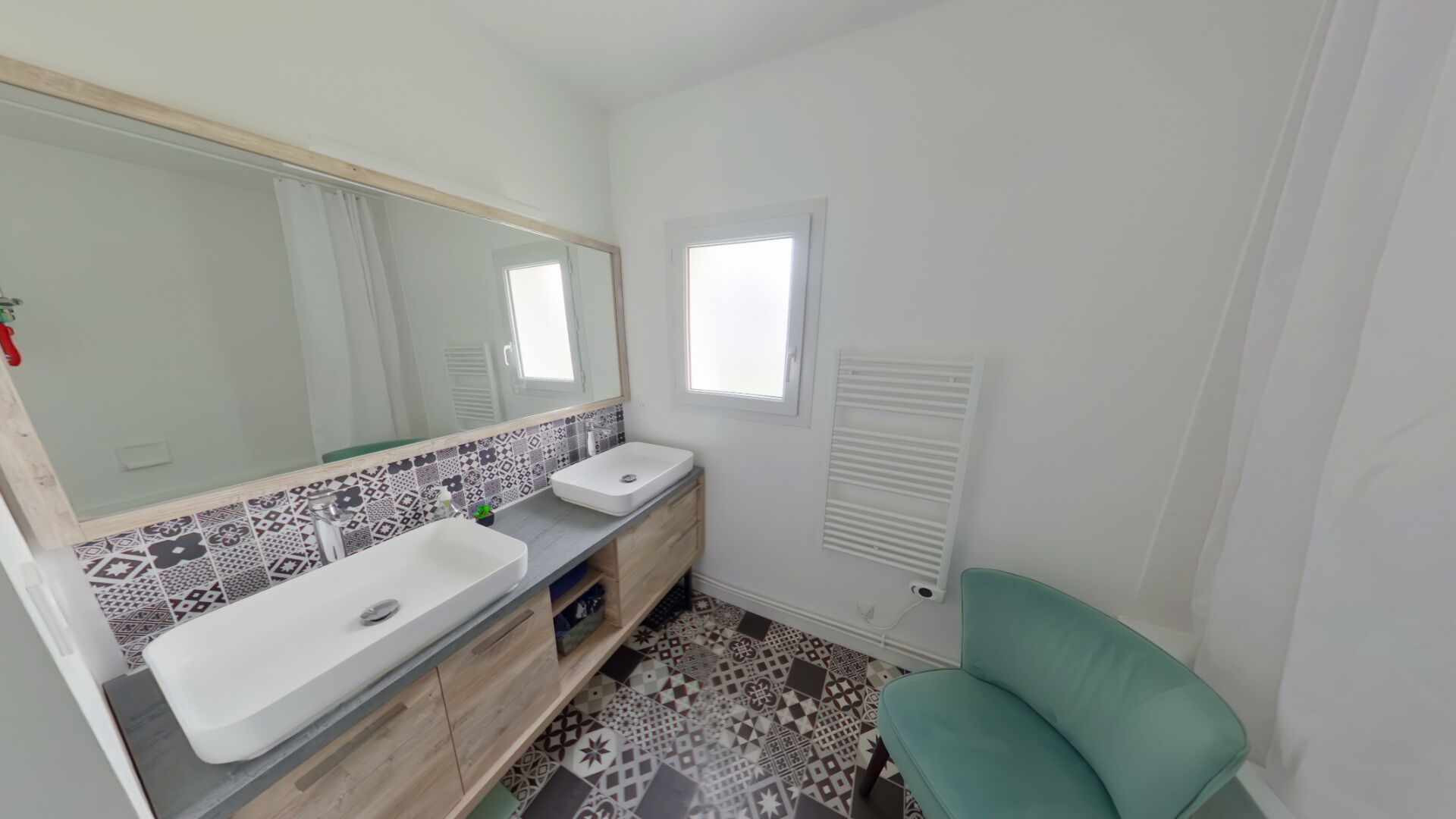 Elle se compose d'une entrée, d'une cuisine, un salon / salle à manger, de 3 chambres dont une suite parentale avec une salle d'eau , une salle de bain, buanderie/ cellier et un WC.