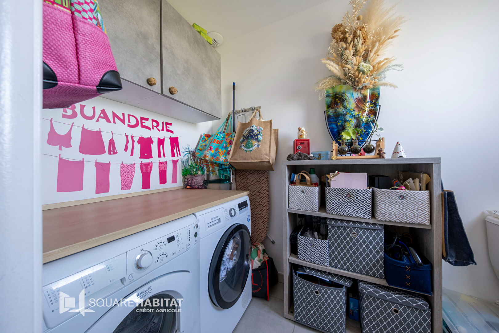 Elle se compose d'une cuisine ouverte sur séjour lumineux, offrant une vue agréable sur la terrasse aménagée et d'un wc avec buanderie.