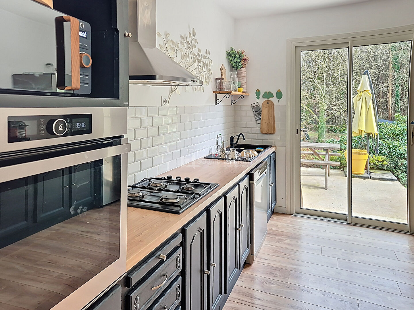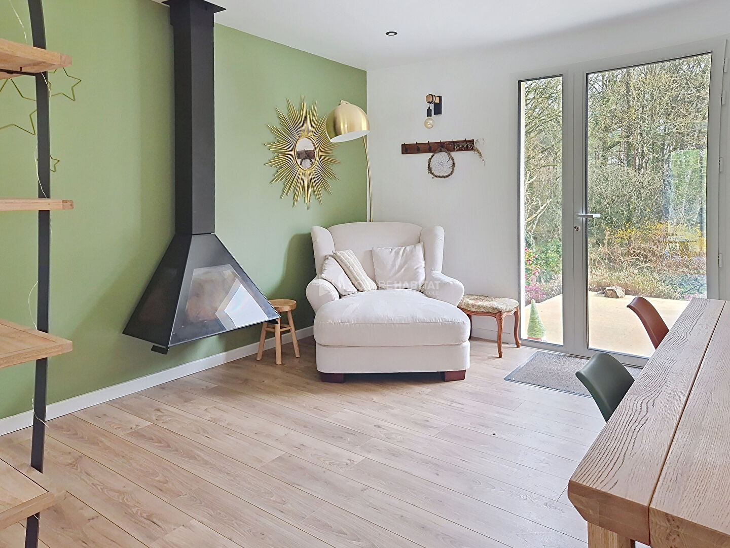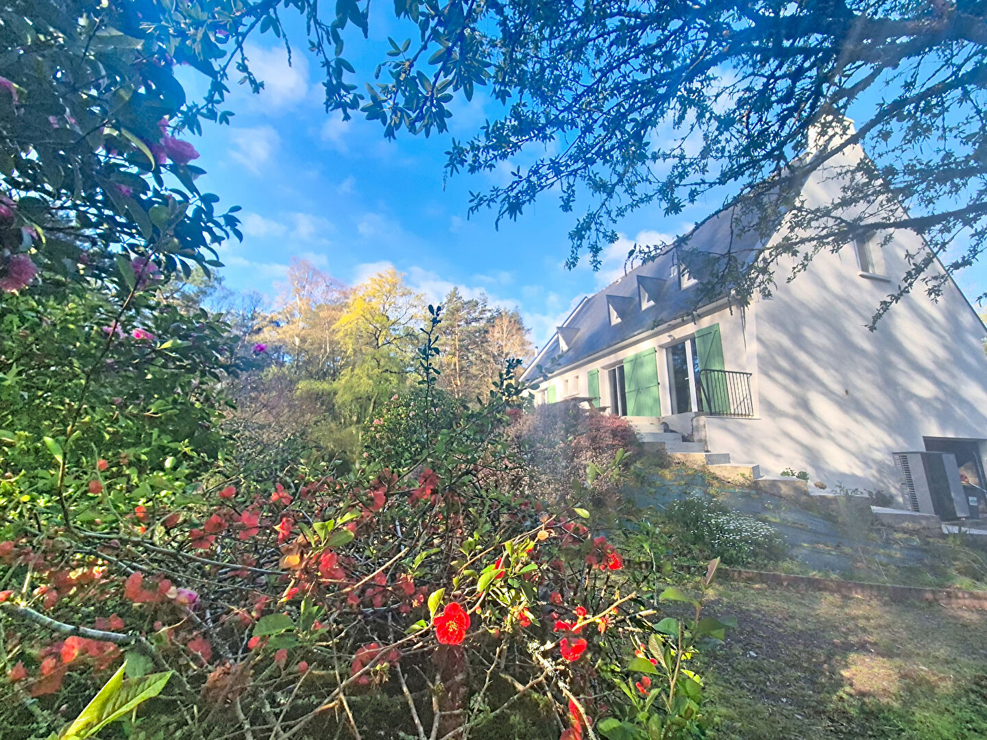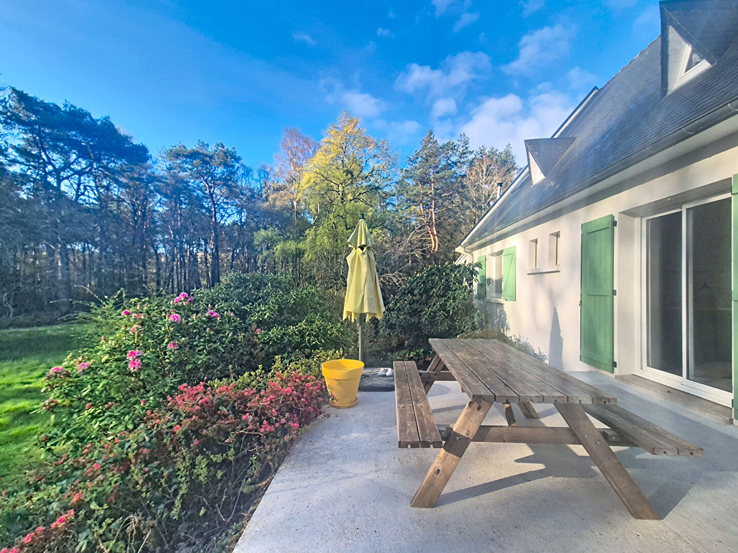 Maison d'habitation traditionnelle bretonne entièrement rénovée sur sous sol. Dans un secteur au calme avec sa vue sur la foret, très beau terrain en partie clôturé. Maison lumineuse composée au rez de chaussée d'une entrée bibliothèque avec son coin cheminée insert ,un très bel espace vie salon séjour ouvert de plus de 40m² ,une cuisine aménagée équipée donnant sur la terrasse bien exposée au sud, une chambre avec salle d'eau ,espace détente bureau véranda donnant sur le petit étang dans un cadre idyllique.