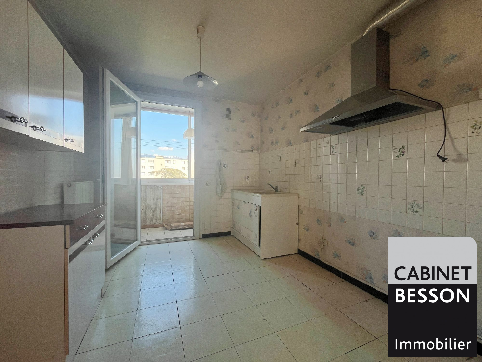 Séjour double donnant sur balcon à l'Ouest, grande cuisine avec loggia juste en face exposée Est.