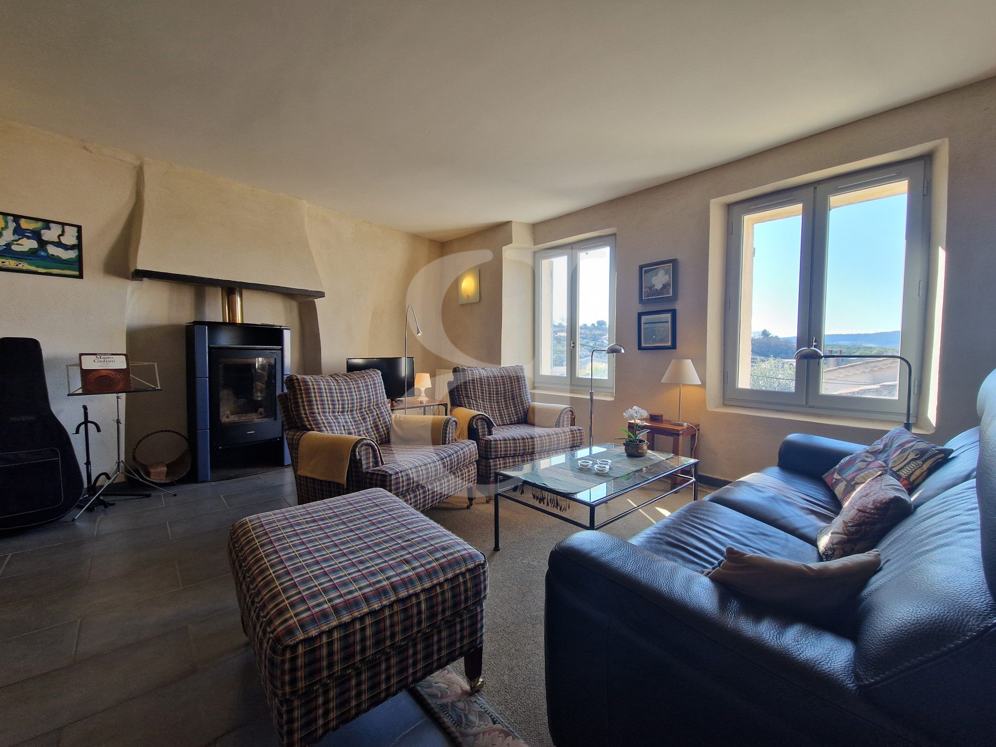 Salon avec poêle à bois 28 m²