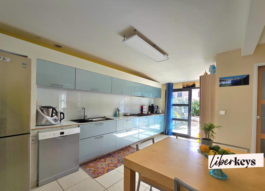 Au porte de Nîmes, dans un environnement résidentiel calme, cette maison en R+1, mitoyenne par un côté, casse tous les codes!