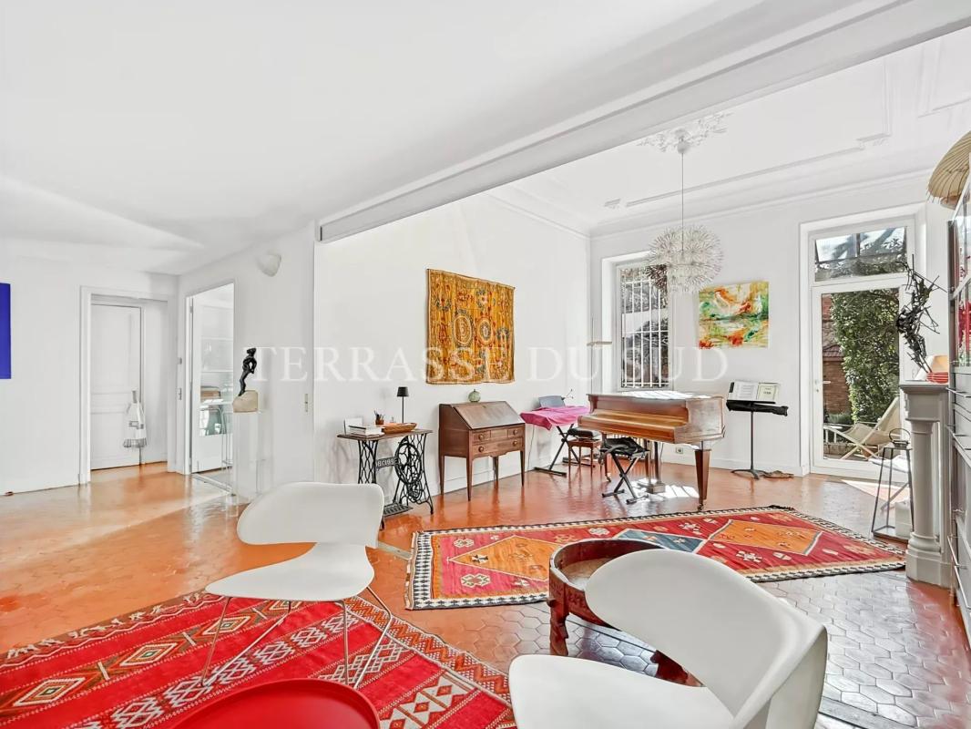 Au sein d'un immeuble bourgeois, bien entretenu, ce bel appartement, en rez-de-jardin, traversant Est et Ouest, est seul sur le palier. Offrant tout le cachet de l'ancien (plafonds ouvragés, cheminées d'apparat, tomettes au sol...), il offre une vaste entrée, un séjour lumineux (30 m2) ouvrant sur le jardin, une salle à manger avec cuisine de 25 m2 (accès jardin), 2 belles chambres de 20 m2 et 14 m2, une spacieuse salle de bains et des toilettes indépendantes. Le séjour et la salle à manger, exposés Ouest, ouvrent sur une jolie terrasse prolongée par un beau jardin arboré (au total 120 m2 environ). Au fond du jardin, se trouvent 2 charmantes remises de 6m2 environ chacune, pouvant servir de bureau ou de stockage. A noter également une petite véranda de près de 6m2 côté cuisine. Enfin, une grande cave de 30 m2, accessible depuis la terrasse, complète l'ensemble.