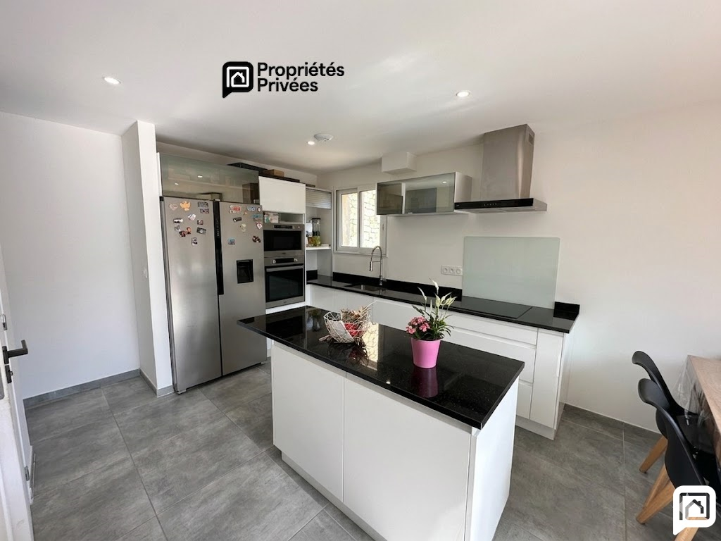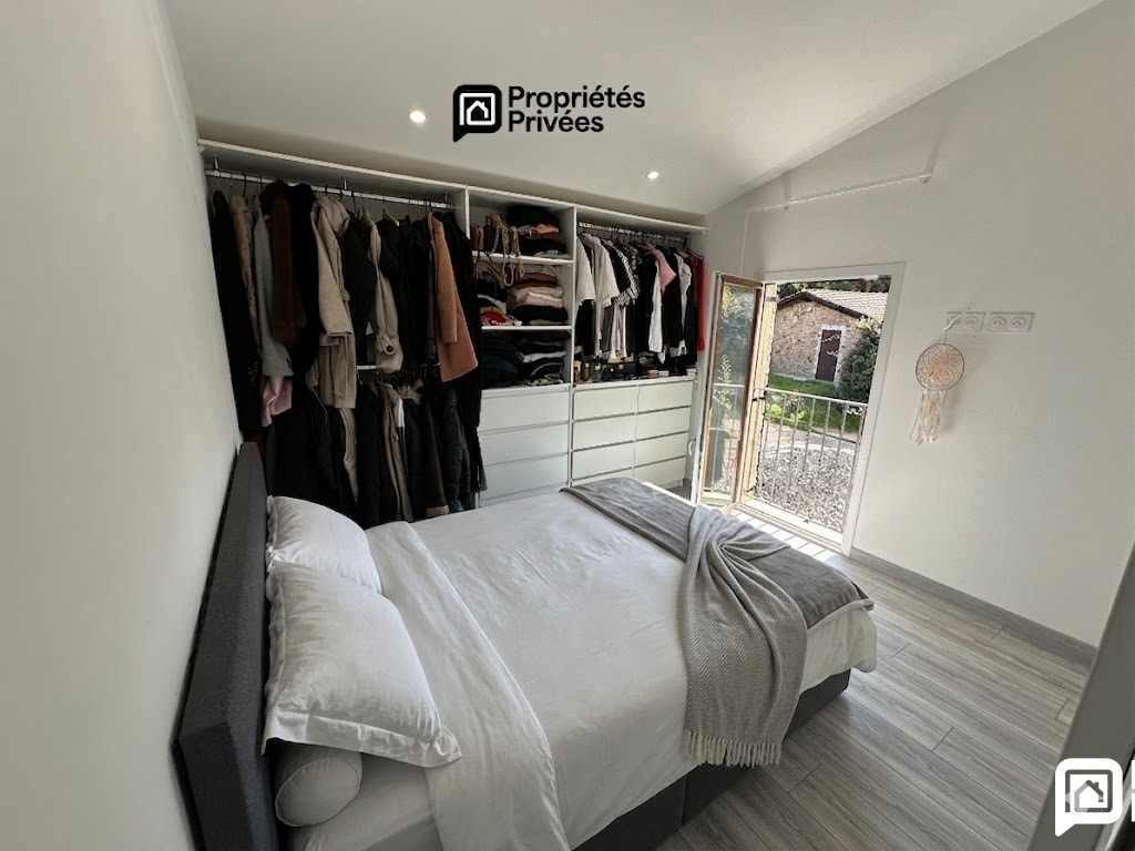 L'habillage en pierre de la façade confère à cette maison un cachet authentique et élégant, parfaitement intégré dans son environnement. Les volumes, la luminosité et l'atmosphère chaleureuse en font un bien particulièrement agréable à vivre.