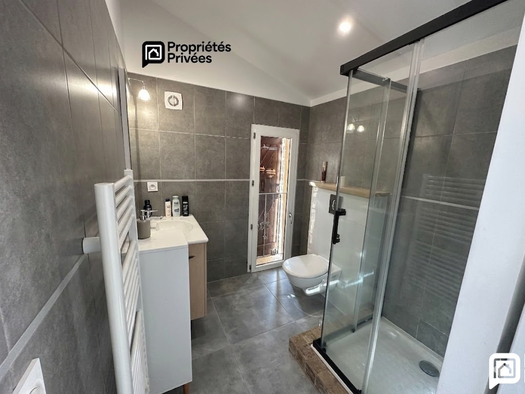 - Une salle d'eau avec vasque, sèche-serviettes et WC.
