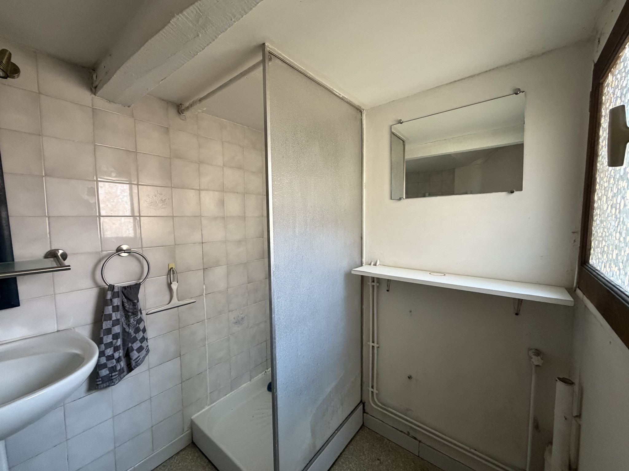 Au premier étage un T2 de 37 m2 composé d'une pièce de vie avec cuisine, d'une chambre, d'une salle d'eau et d'un WC, actuellement libre DPE : E