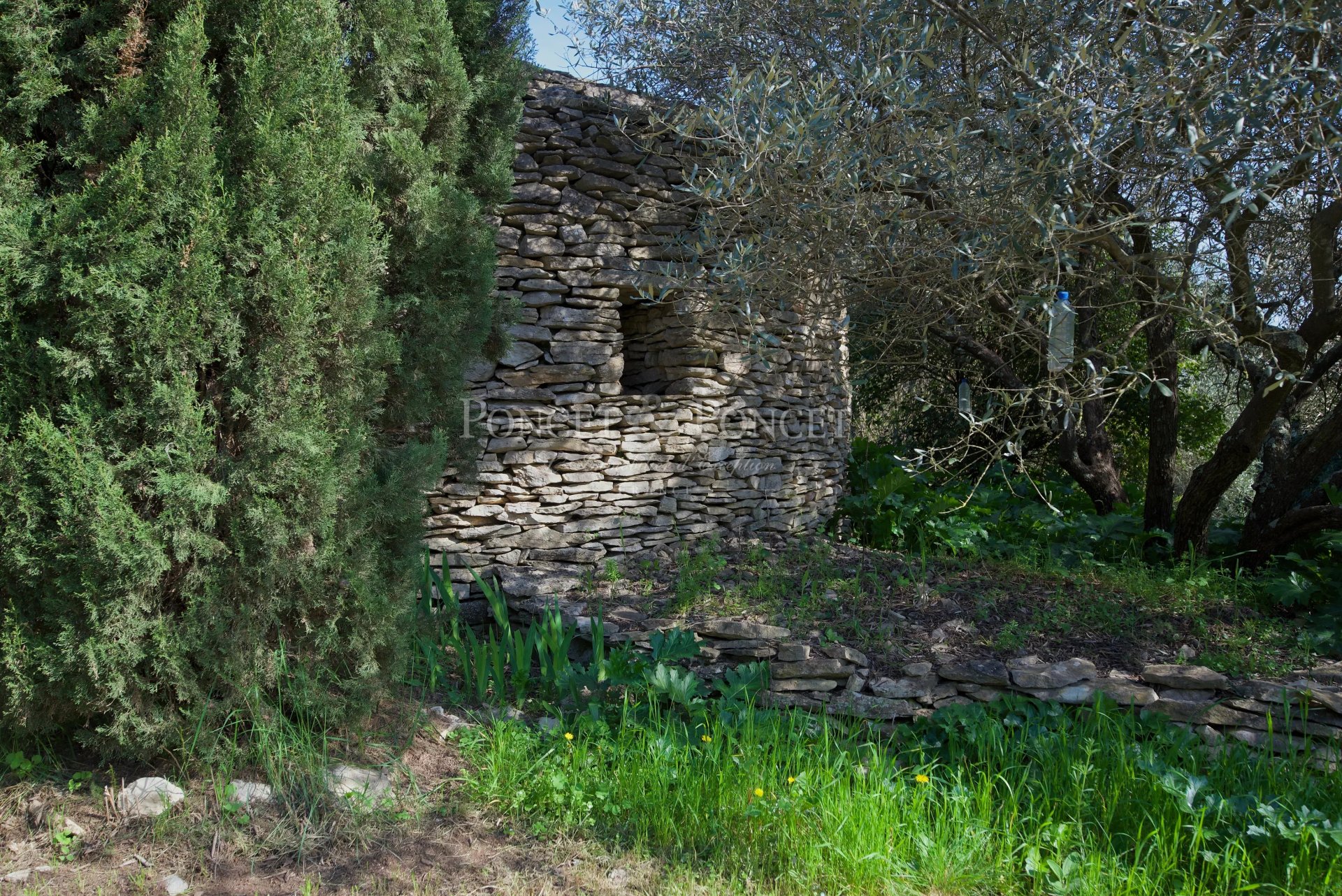 Entre pins, oliviers, végétation méditerranéenne et murs en pierre sèche, le lieu séduit immédiatement par son atmosphère douce, authentique et sa position dominante.