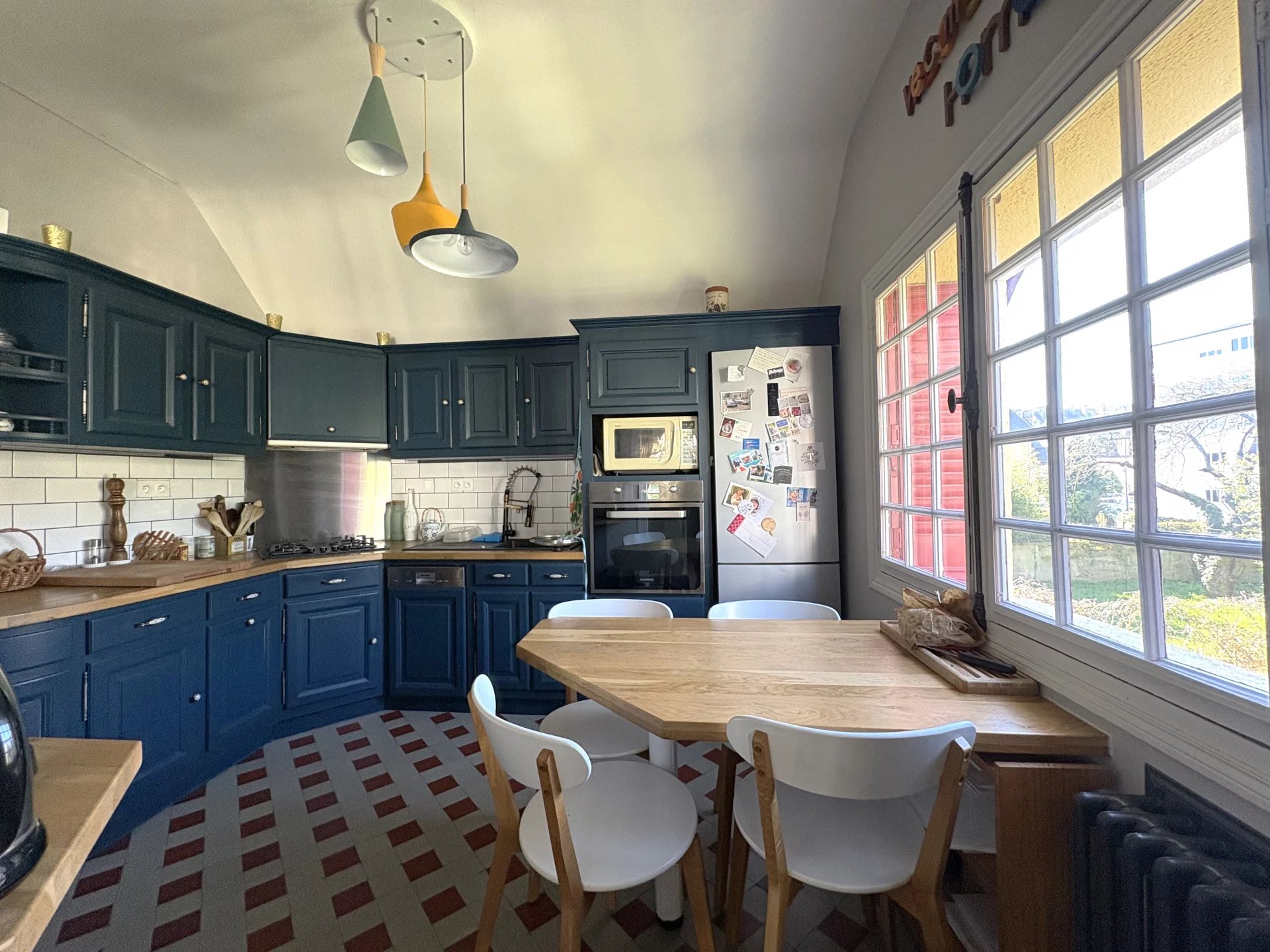 ST BRIEUC, 5 mns centre ville, jolie maison 4 P. des années 1930 comprenant : entrée, W.C., séjour salon avec cheminée, cuisine équipée, 2 chambres dont 1 avec dressing, salle de bains, W.C., chaufferie-buanderie, cave et garage - jardin clos