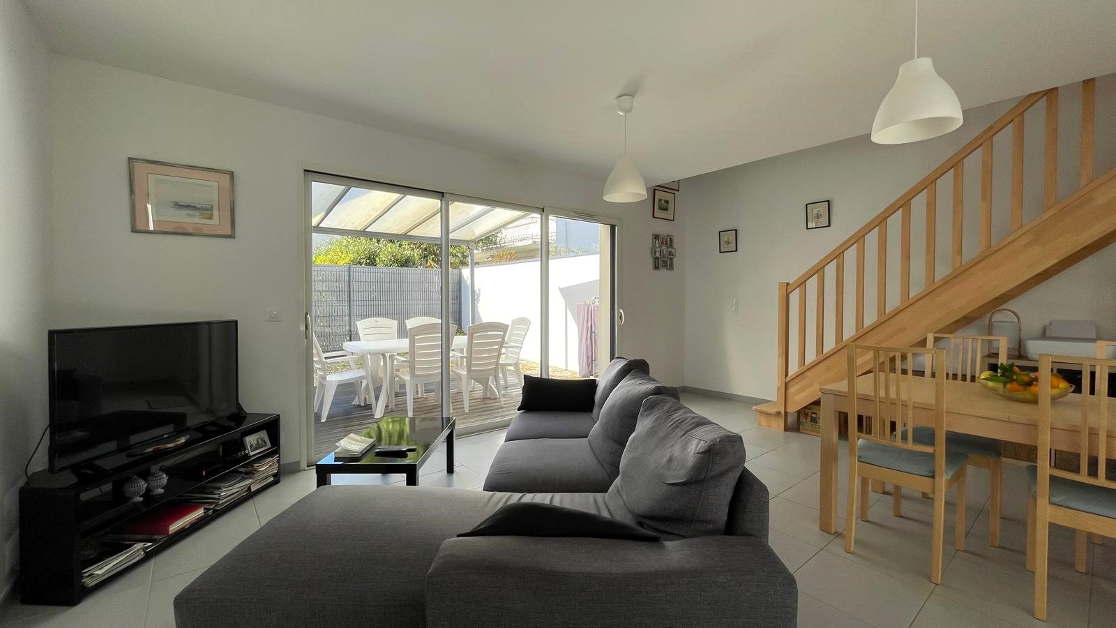 SAINT-GEORGES-DE-DIDONNE (17110), à seulement 600 mètres de la plage et des commerces de centre-ville, maison mitoyenne récente de 2015 exposée Sud-Ouest et développant environ 104m2 dont cellier répartis sur 2 niveaux.