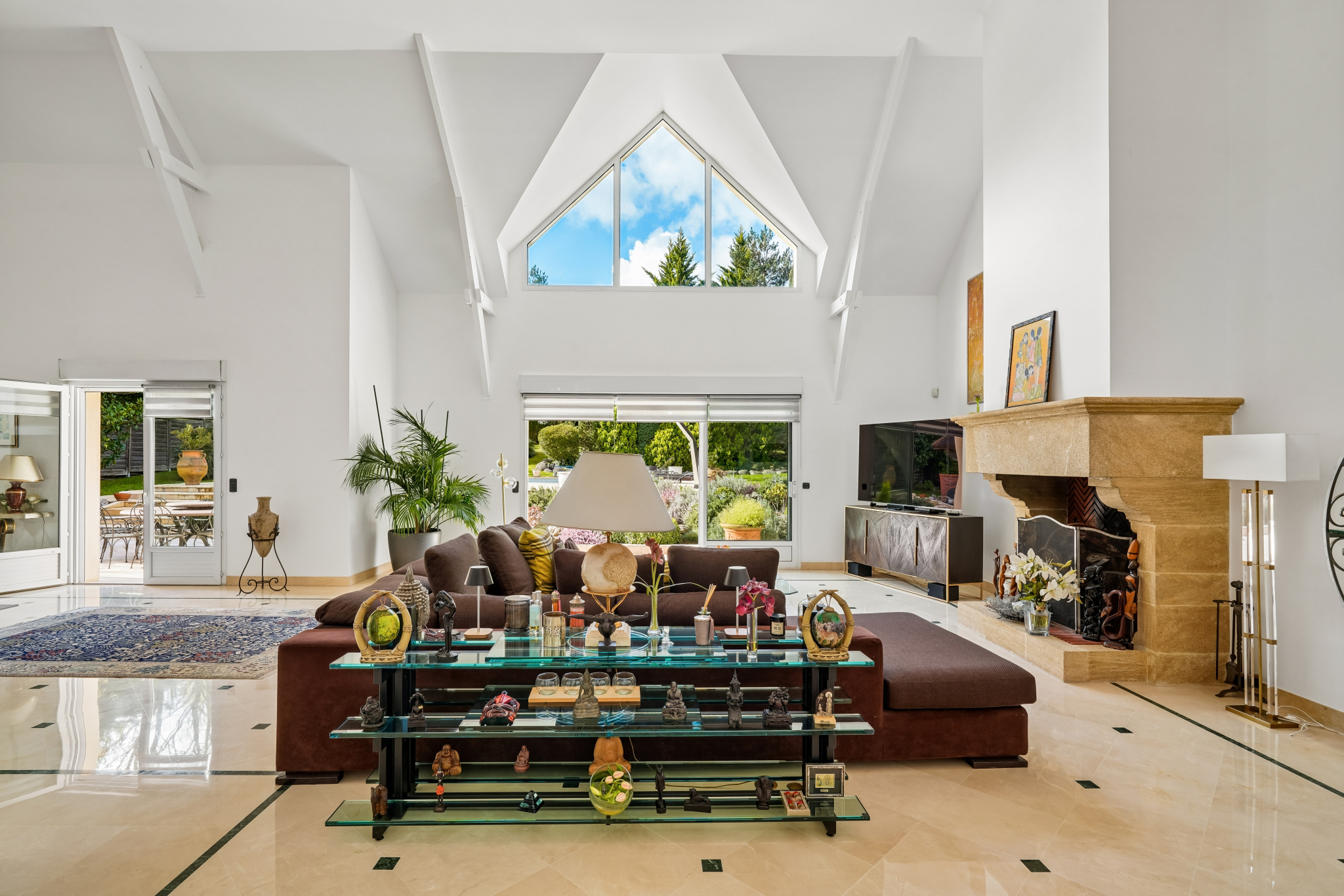 Dès l'entrée, un vaste hall avec vestiaire et toilettes invités annonce le ton. Le coeur de la maison s'articule autour d'un espace de réception cathédrale d'environ 90 m2, sublimé par une cheminée et ouvert de plain-pied sur la terrasse, le jardin et la piscine orientés plein sud-ouest. La cuisine dînatoire, spacieuse et conviviale, de plus de 50 m2, prolonge ces espaces de vie avec élégance.