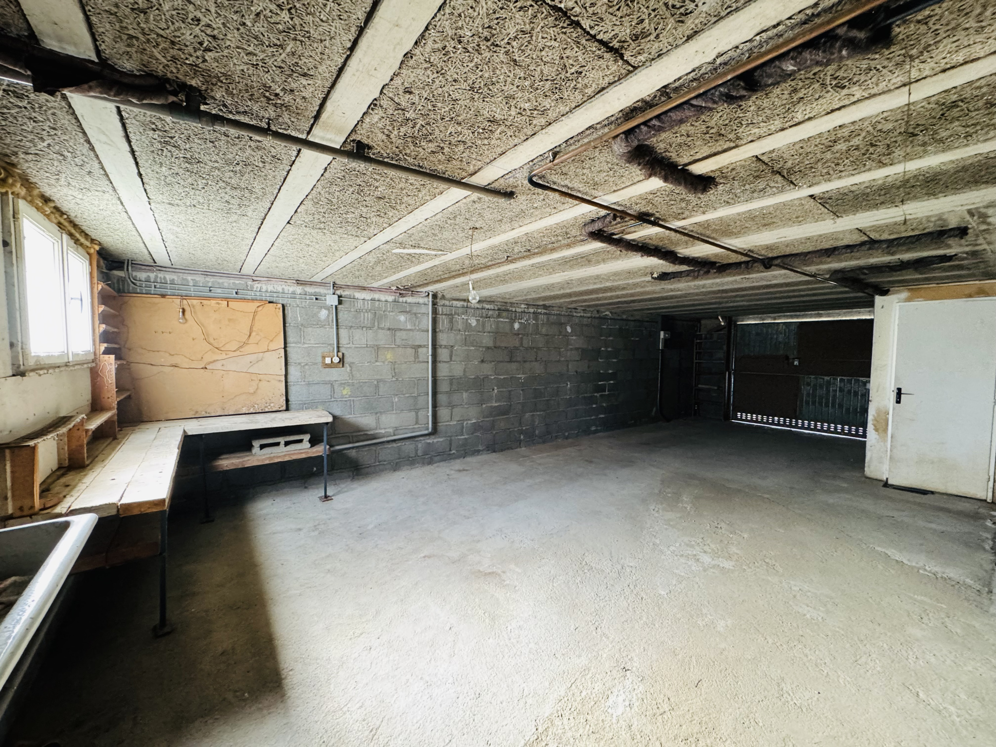 La maison date de 1978, elle se compose sur la totalité du rez-de-chaussée, d'un grand espace garage / atelier, remise. A l'étage, la partie vie comprend un salon / séjour ouvert sur balcon, une cuisine séparée, 3 chambres, salle de bains et wc indépendant. Jardin attenant clos de mur.