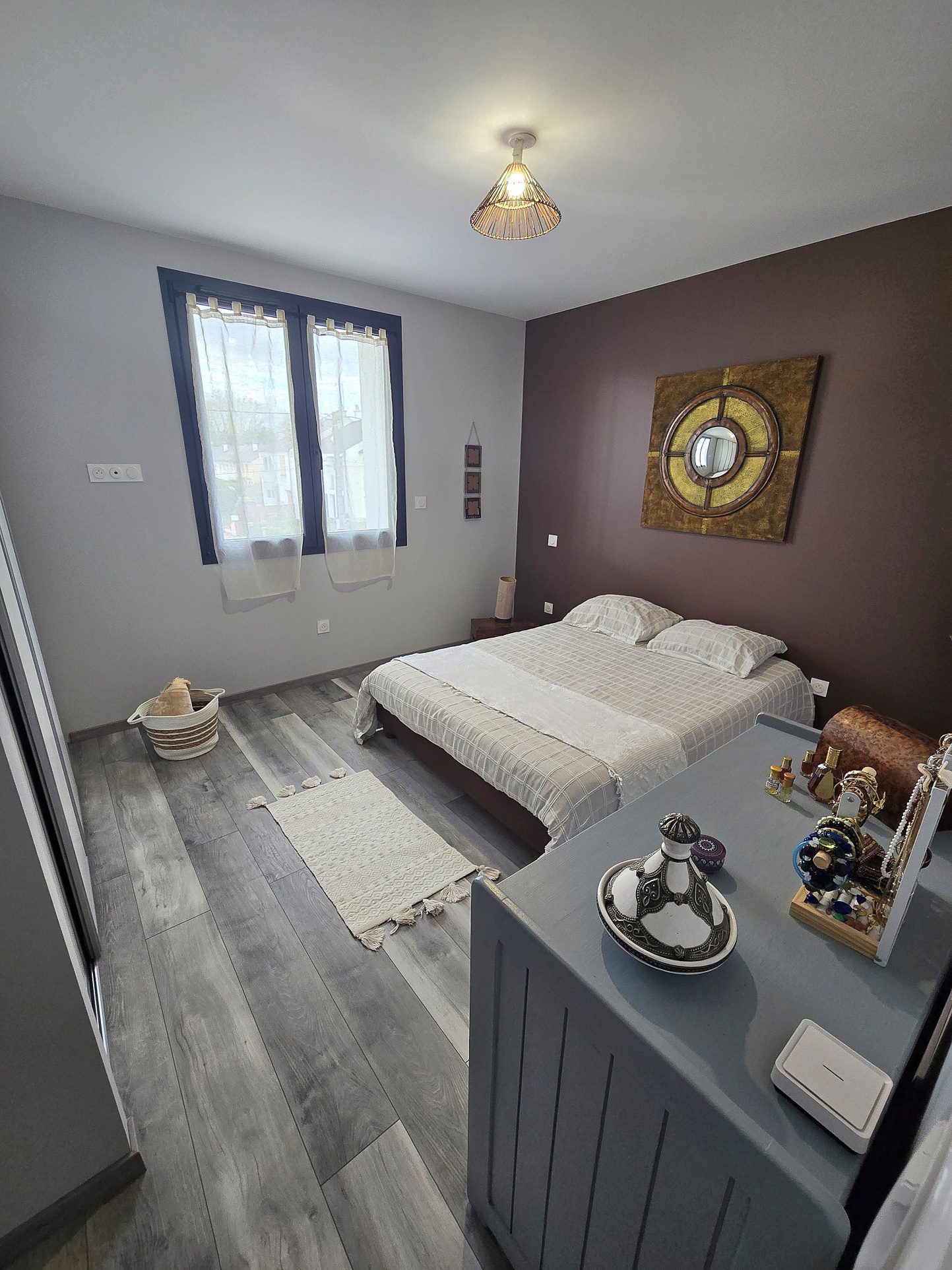 - A l'étage : 4 chambres avec placards (9,60m2, 11,13m2, 10,74m2 : avec accès balcon et 15,17m2 : possibilité suite parentale).
