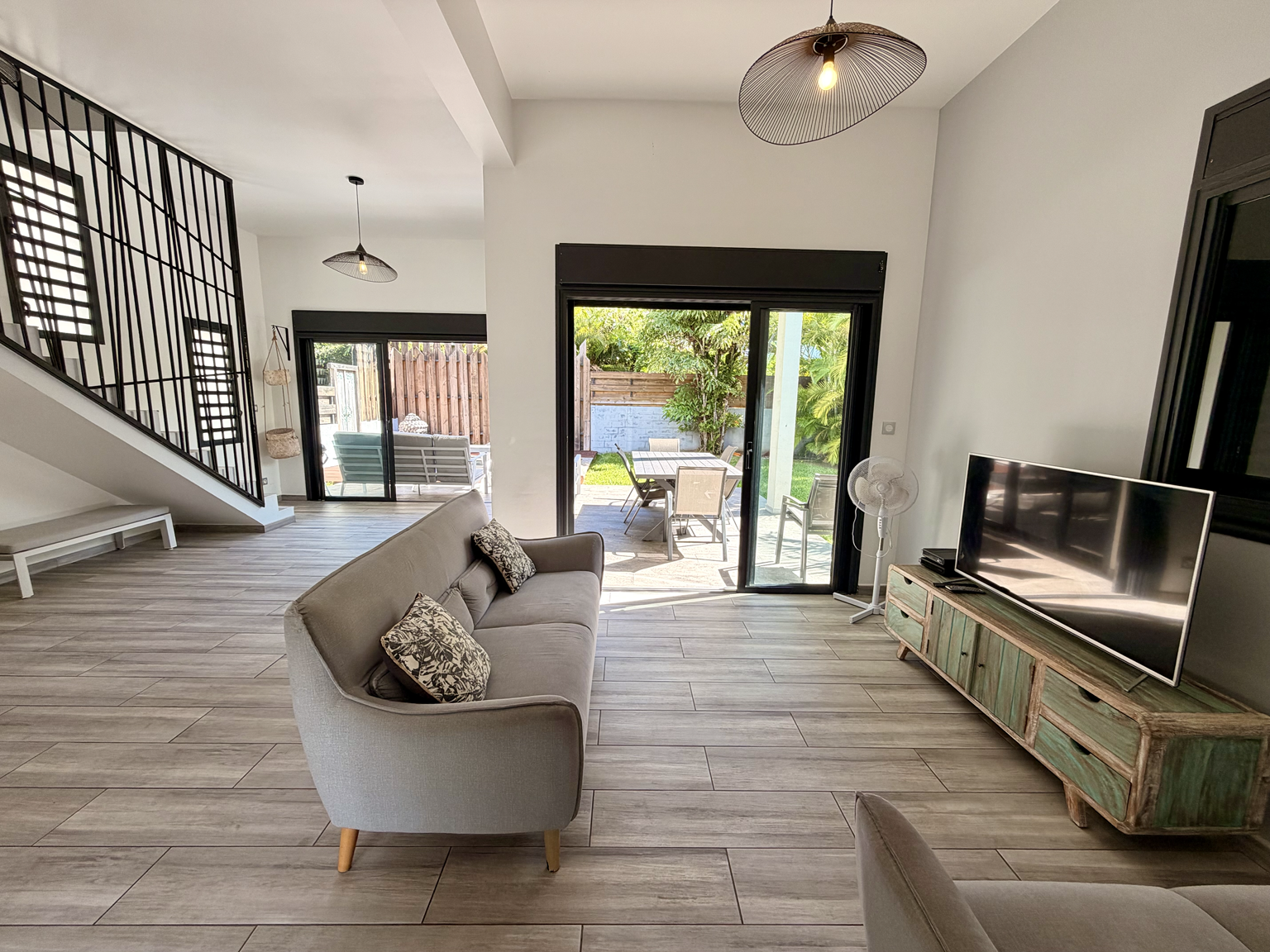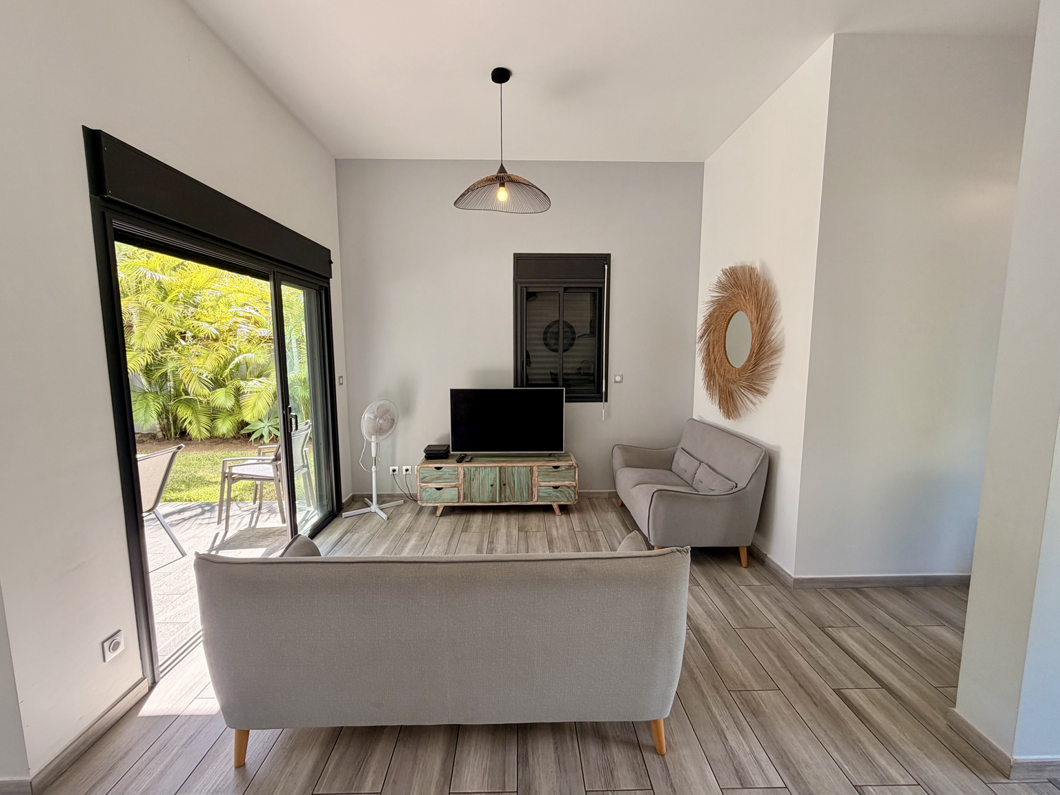 Je suis une charmante maison récente à l'ambiance cosy et suis décorée avec un goût certain. Idéalement située à deux pas du merveilleux lagon de la Saline les Bains. Je dispose :