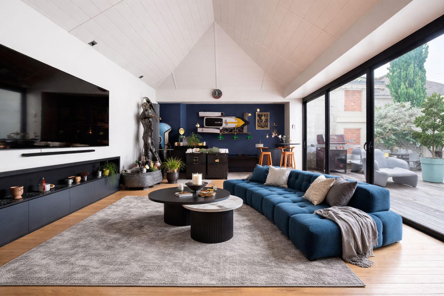 - Vaste espace salon - séjour, lumineux, ouvrant sur un jardin intime.