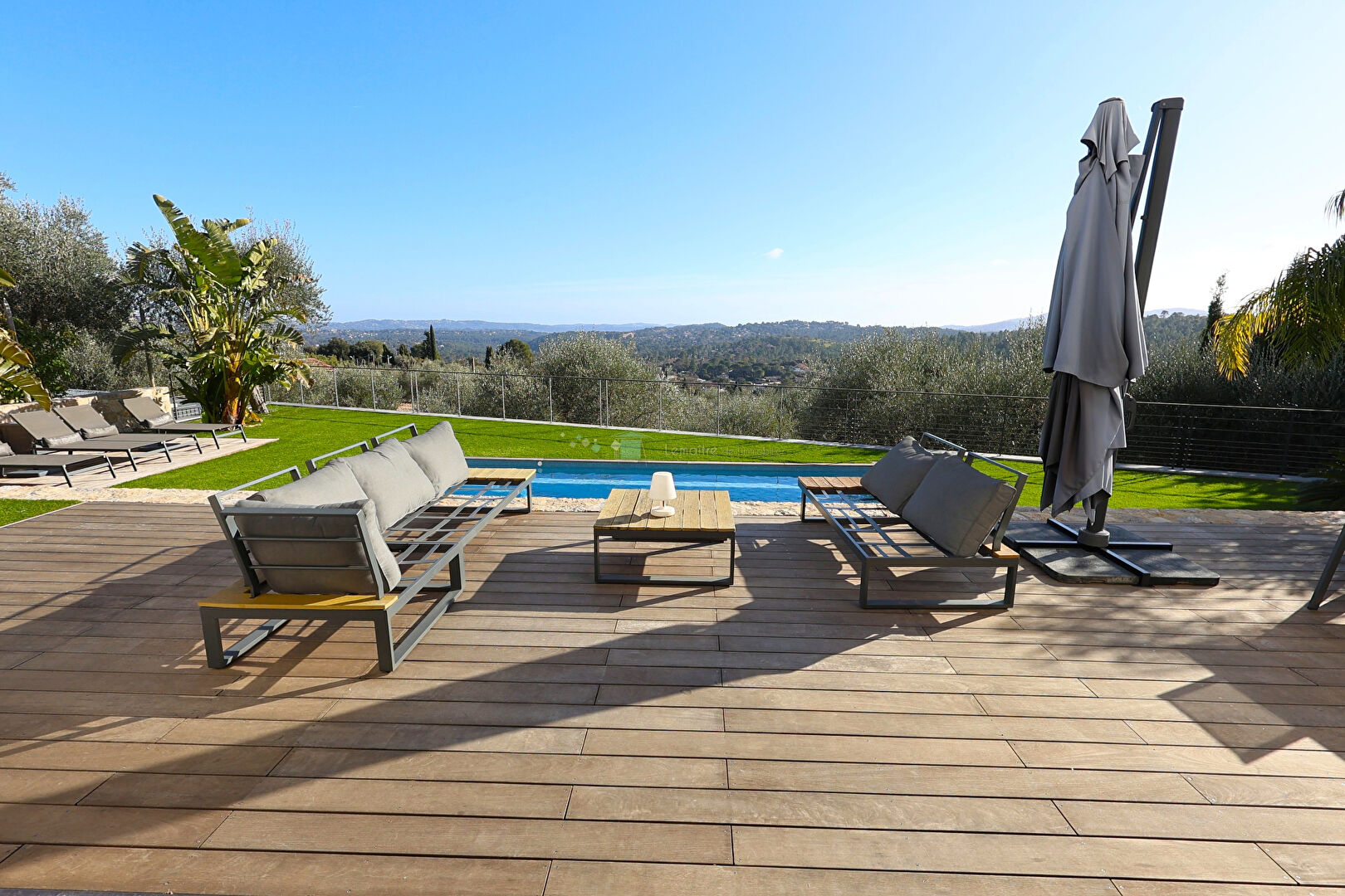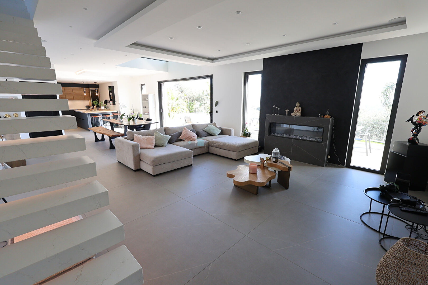 En rez-de-jardin, une cuisine moderne entièrement équipée avec cellier s'ouvre sur un vaste séjour baigné de lumière grâce à de grandes baies vitrées à galandage, donnant directement sur l'espace extérieur. Vous profiterez d'un espace piscine chauffée avec volet intégré.