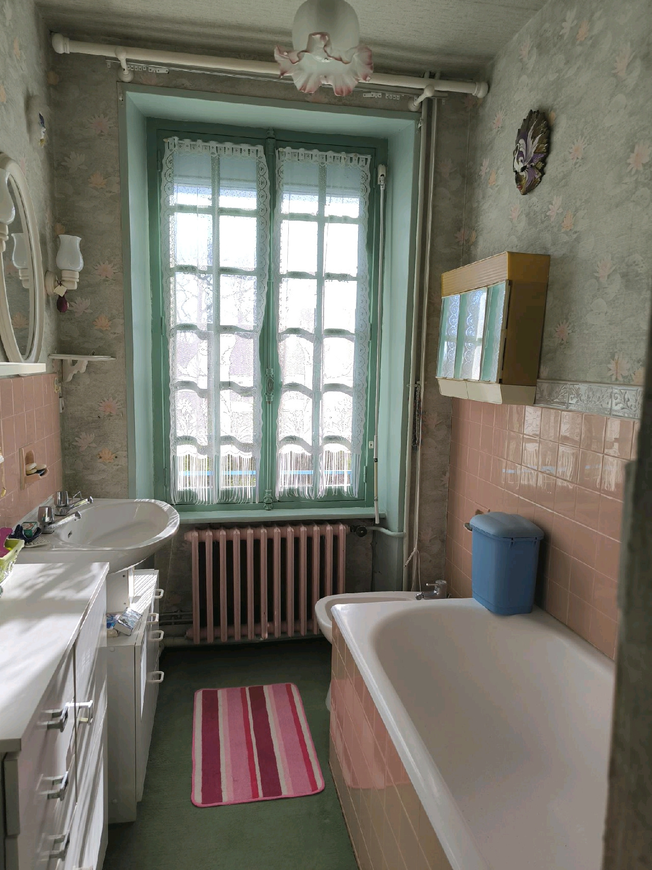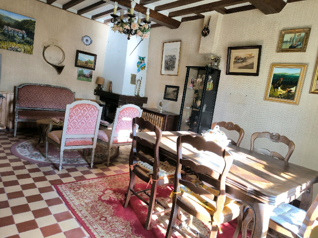 Charmante maison ancienne de 5 pièces principales comprenant : hall d'entrée, cuisine aménagée avec coin repas, salon indépendant, 2 grandes chambres à l'étage et salle de bains.