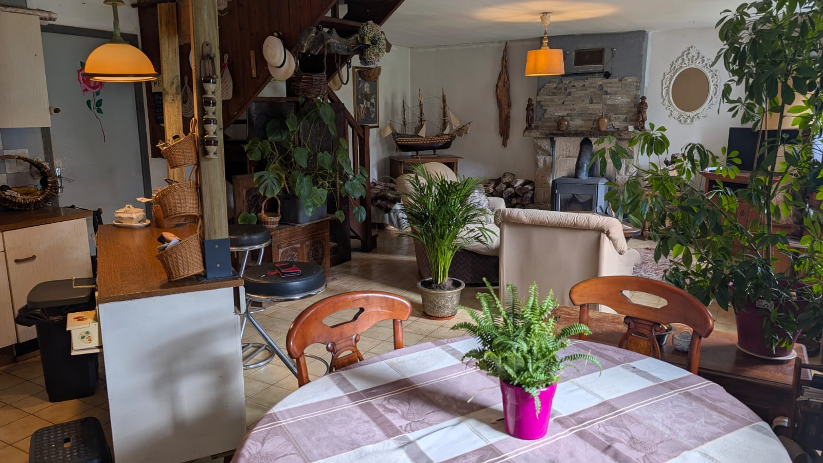 La première maison habitable, vous propose au rez-de-chaussée, un séjour , une salle à manger avec une cuisine ouverte, un bureau, une salle de bain, une buanderie et WC. A l'étage, un pallier et deux chambres.