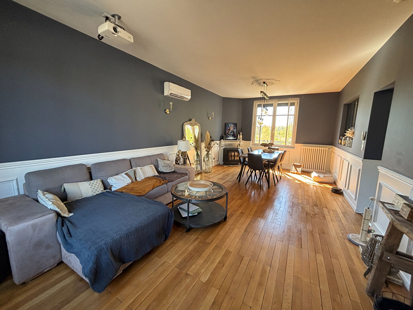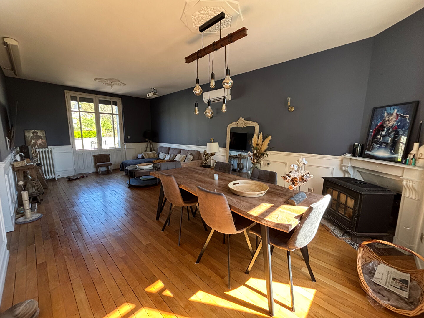 D'une entrée très spacieuse, donnant accès à une pièce de vie lumineuse avec un poêle à bois mais aussi un système de climatisation réversible.