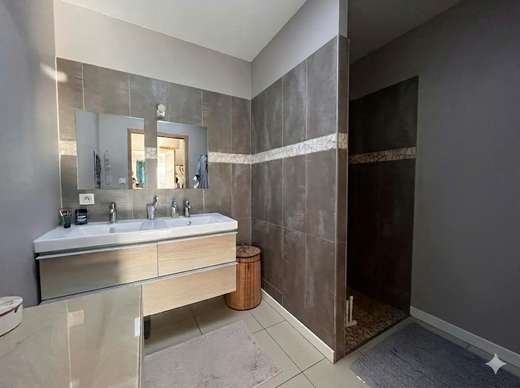 Dès l'entrée indépendante, vous serez séduits par une belle pièce de vie lumineuse aux volumes généreux, avec cuisine ouverte, créant un espace convivial et chaleureux. Le rez-de-chaussée propose également une confortable suite parentale ainsi qu'un grand garage attenant, apportant un réel confort au quotidien.