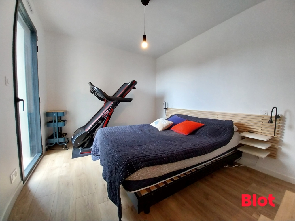 À l'étage, une mezzanine lumineuse (facilement transformable en chambre supplémentaire selon vos besoins), deux chambres ainsi qu'une salle de bain avec douche et baignoire viennent compléter l'ensemble.