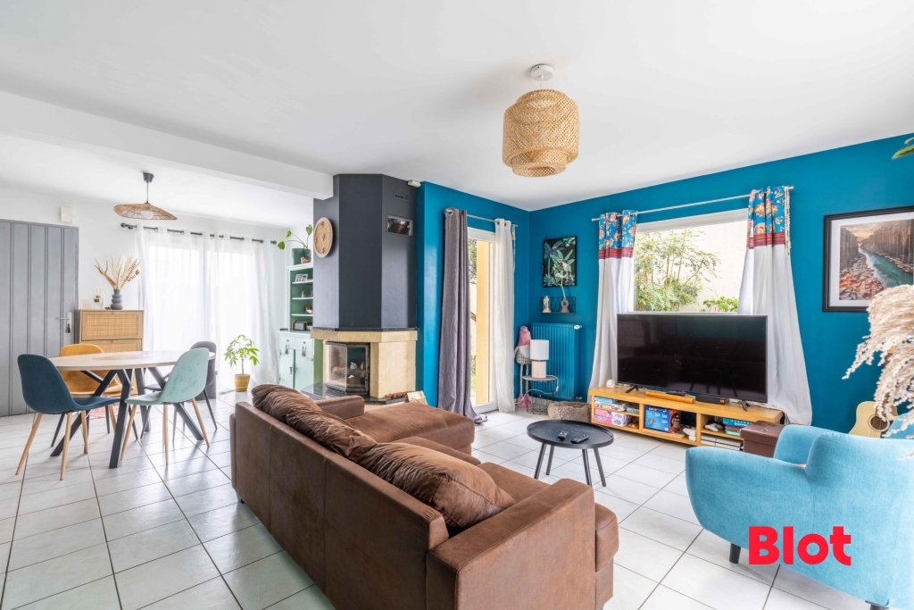 Dès l'entrée, l'atmosphère se veut accueillante et lumineuse. Le salon invite à la détente tandis que la salle à manger, sublimée par sa cheminée à foyer fermé, promet de doux moments au coin du feu lors des soirées d'hiver.