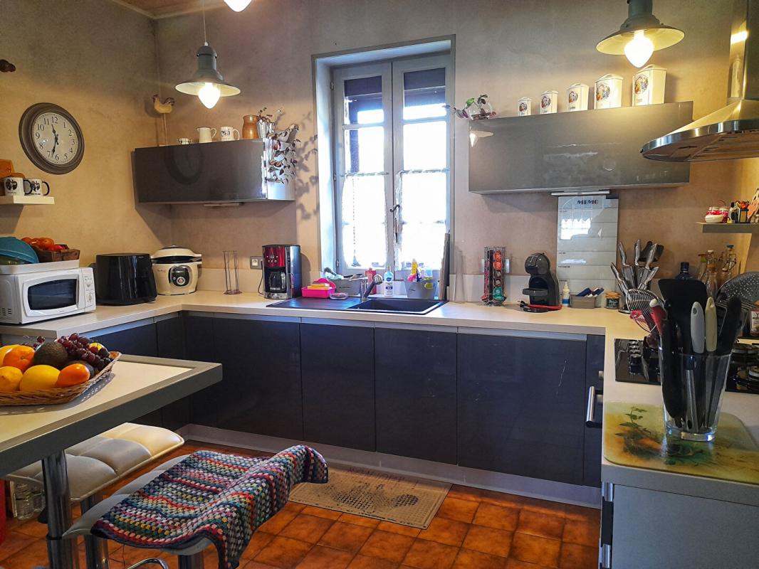 Au rez-de-chaussée, la maison offre une spacieuse pièce de vie de 50 m², donnant sur une terrasse exposée plein sud, également accessible depuis une cuisine équipée, fonctionnelle et harmonieuse.