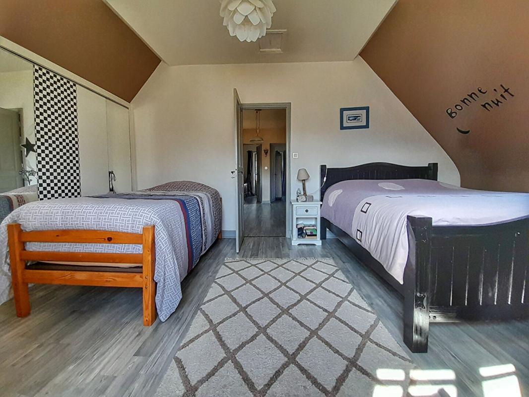 L'étage, au style moderne, comprend trois chambres confortables, une salle d'eau et un second WC indépendant.