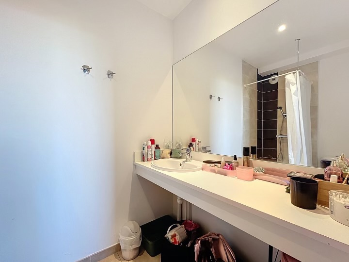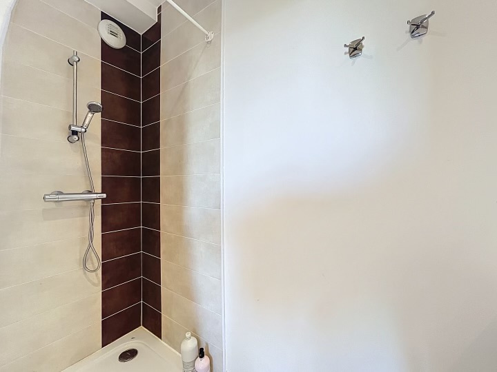 Le Logement est entièrement meublé et équipé : rare type deux dans la copropriété ( 2 seulement) belle pièce de vie, bureau, placards et espace cuisine équipée, salle d'eau privée avec WC et douche ainsi qu'une chambre.