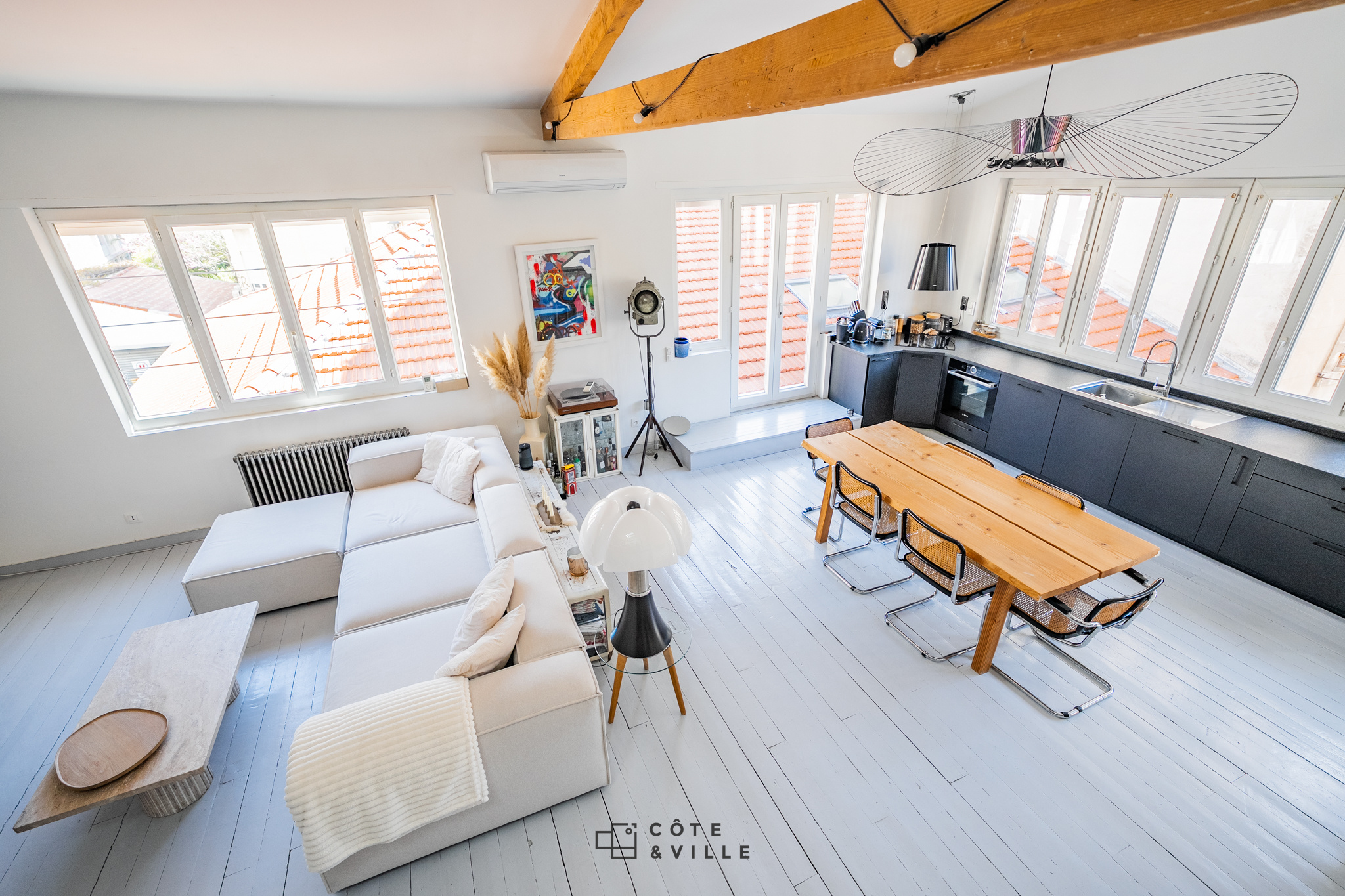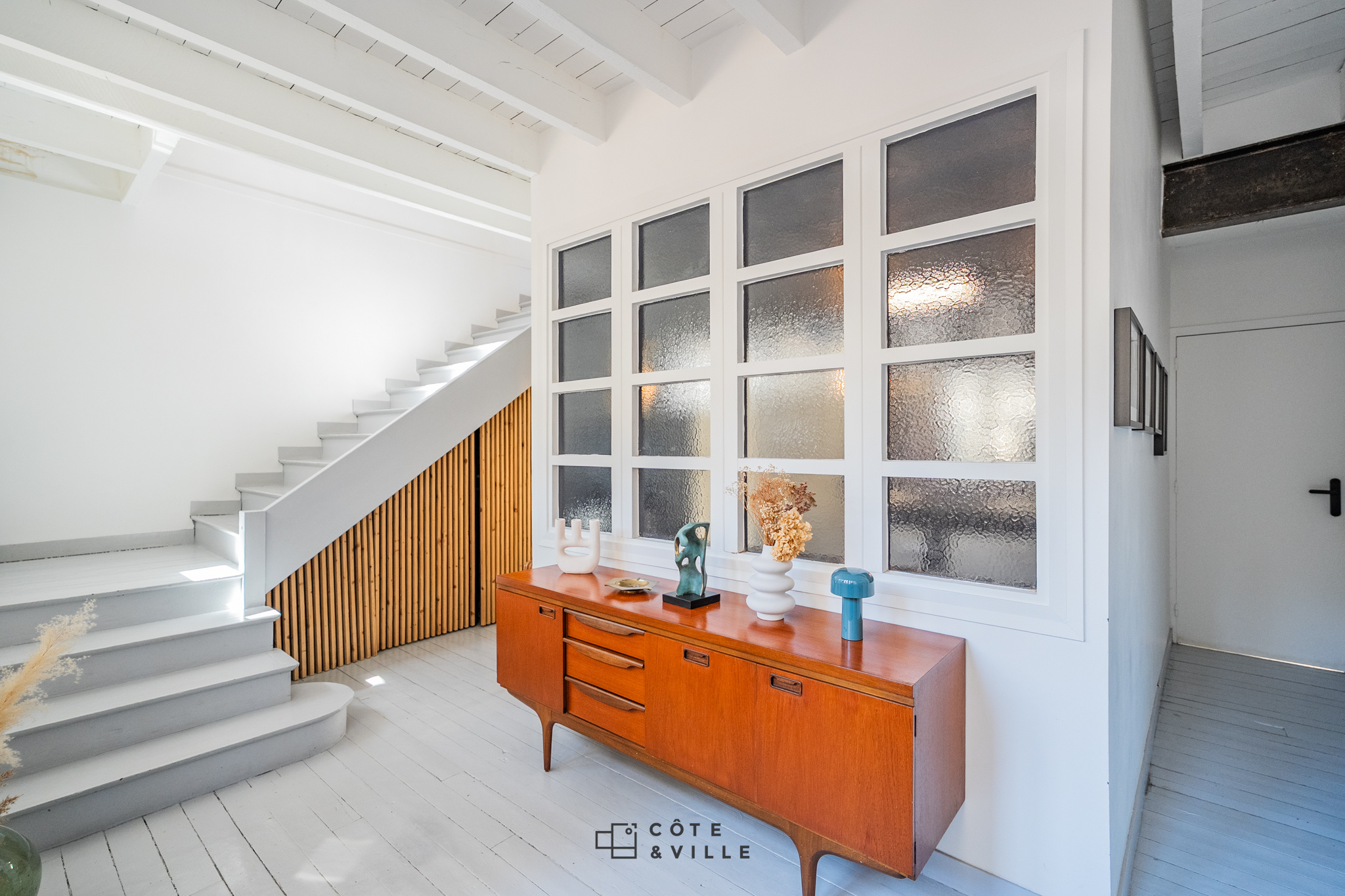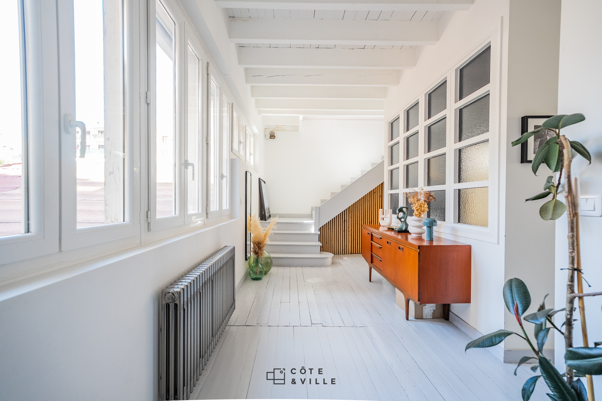 D'une surface de 117 m2 en duplex, cet appartement à l'esprit loft séduit dès les premiers instants par ses volumes hors normes et son caractère unique.