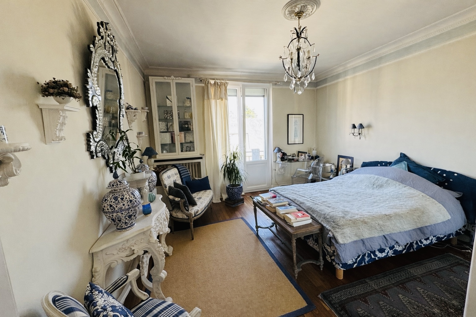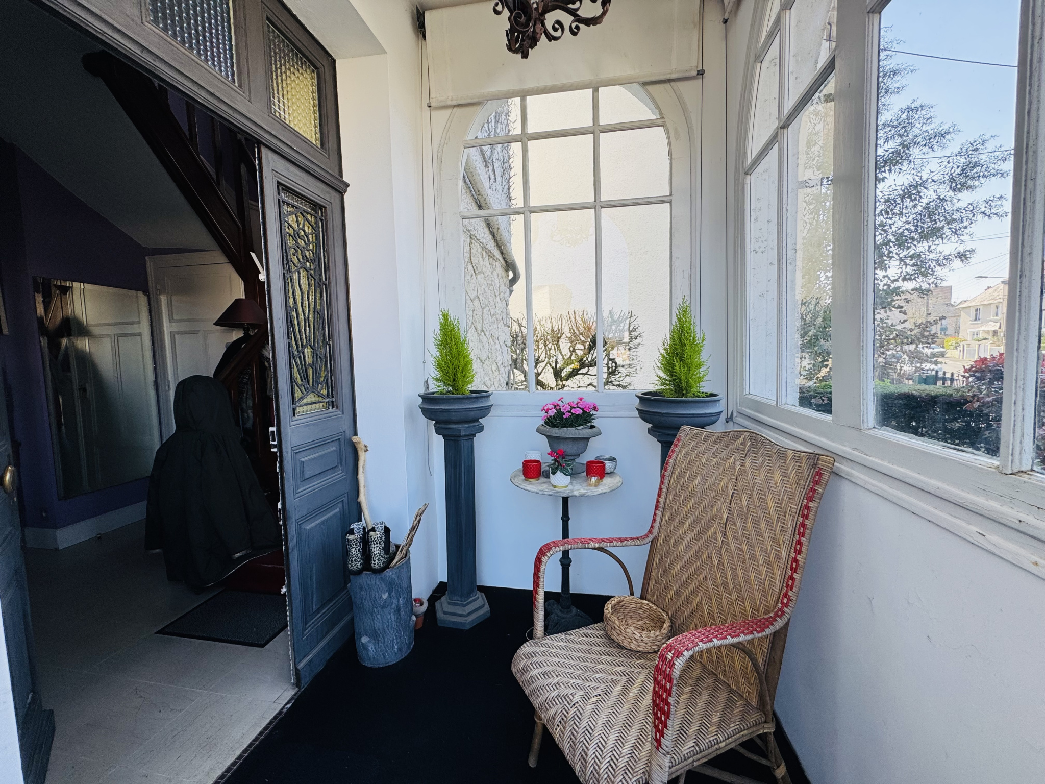 L'entrée se fait par une véranda avec sas, menant à un vaste double séjour lumineux avec bow-window, composé d'un salon et d'une salle à manger, avec parquet ancien et cheminée fonctionnelle. La cuisine indépendante offre un accès direct à l'extérieur, vers une terrasse et le jardin.