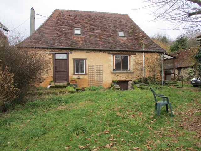 Fermmette comprenant une maison en partie sur cave composée au rdch d'une grande cuisine avec cheminée et poêle, séjour/salon de 29 m2 avec cheminné et poêle . A l'étage deux chambres mansardées dont une avec penderie et placards, salle deau avec wc.